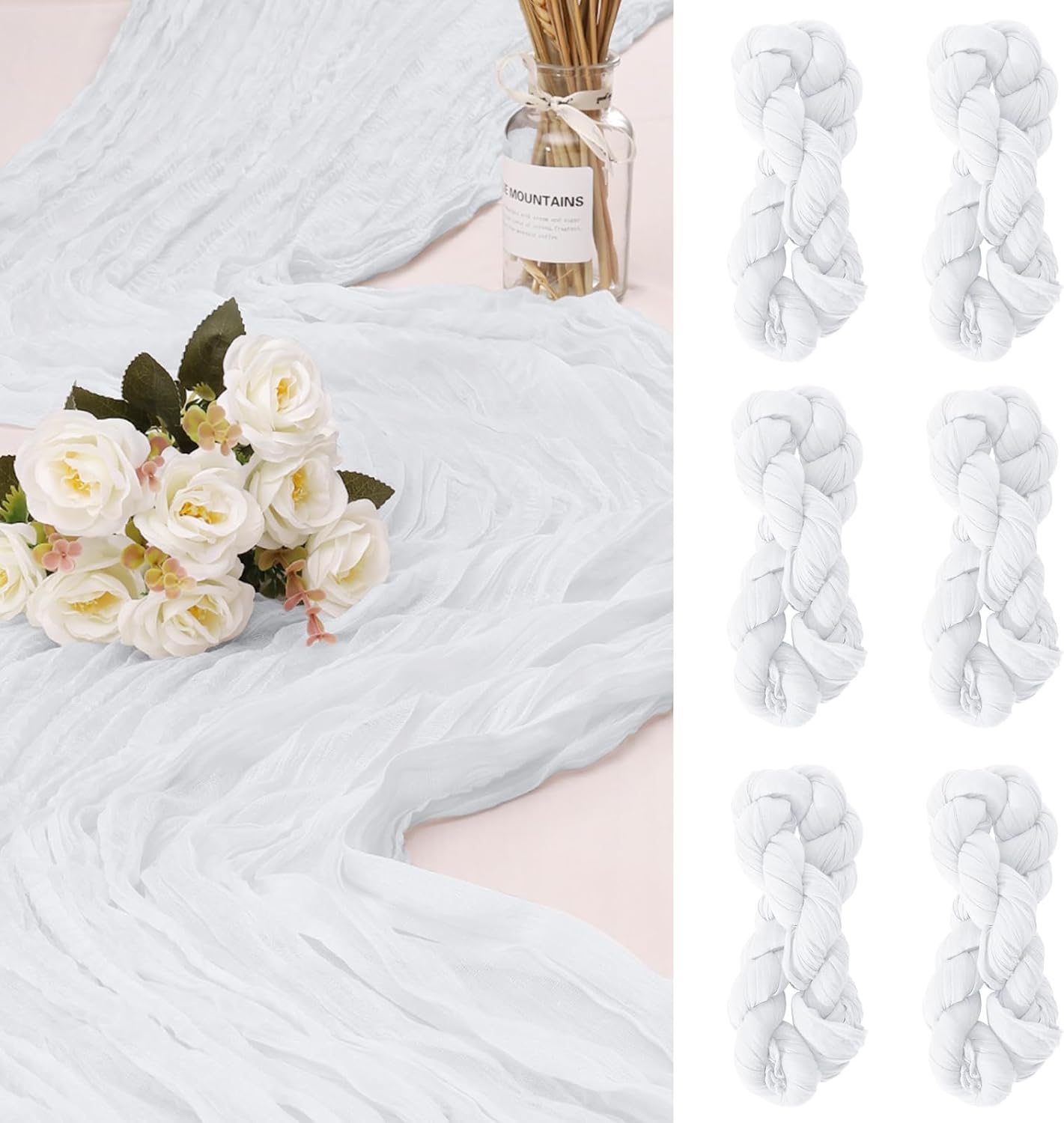 6 Pack Cheesecloth Table Runner 10Ft Christmas Gauze Boho Table Runners for Wedding Decor Bridal Shower Decorations Baby Shower Party(35" x 120")