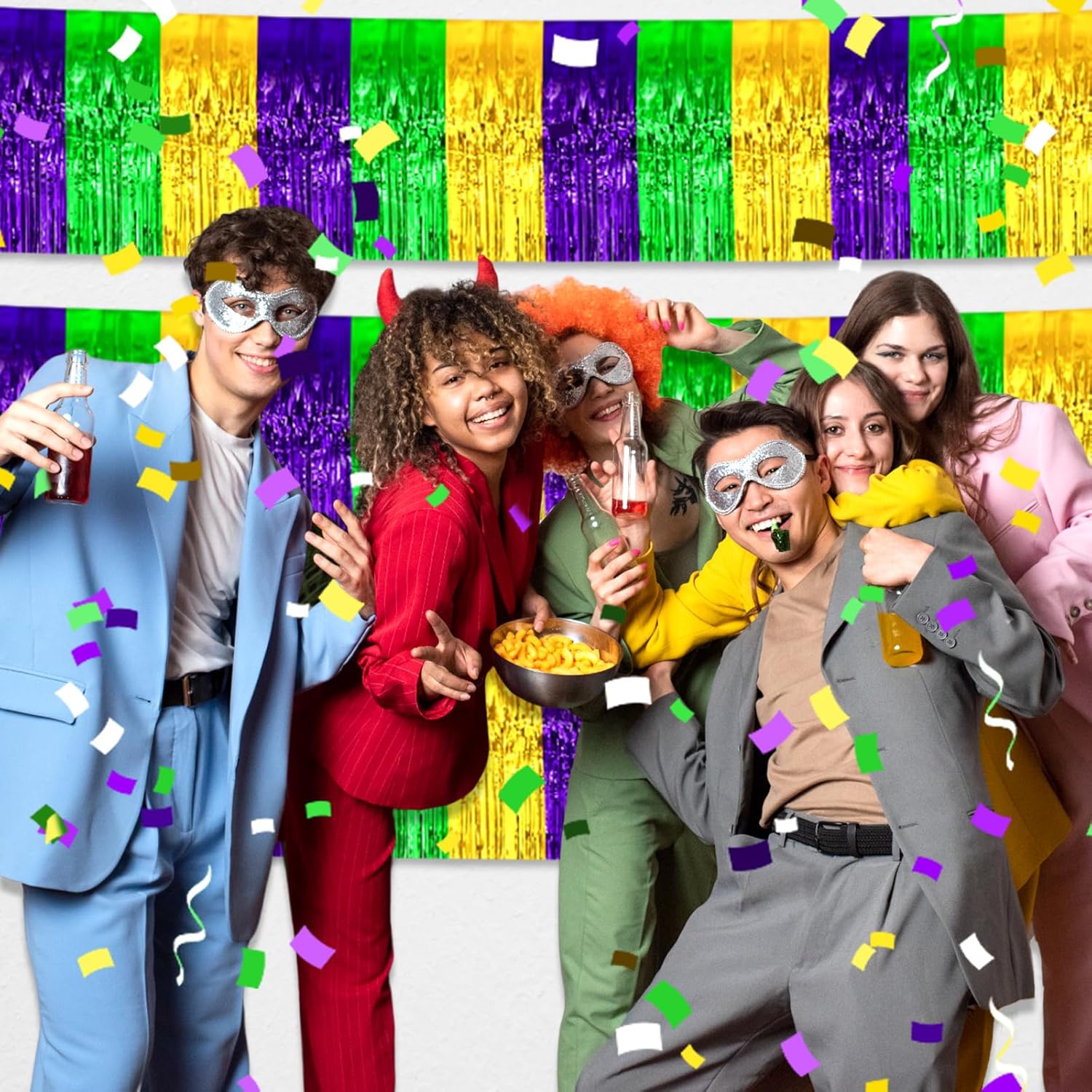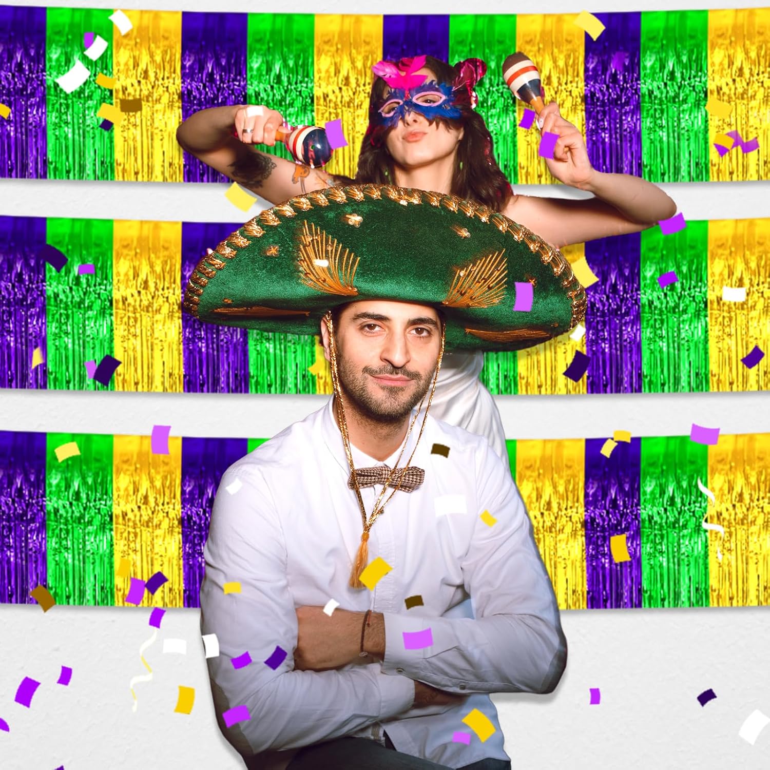 3 Pack 10 Long Gold Green Purple Metallic Foil Fringe Garland Wall Hanging Tassle Banner, Mother's Day, Easter, Parade Floats, Birthday, Theme Party, Wedding Party Decorations