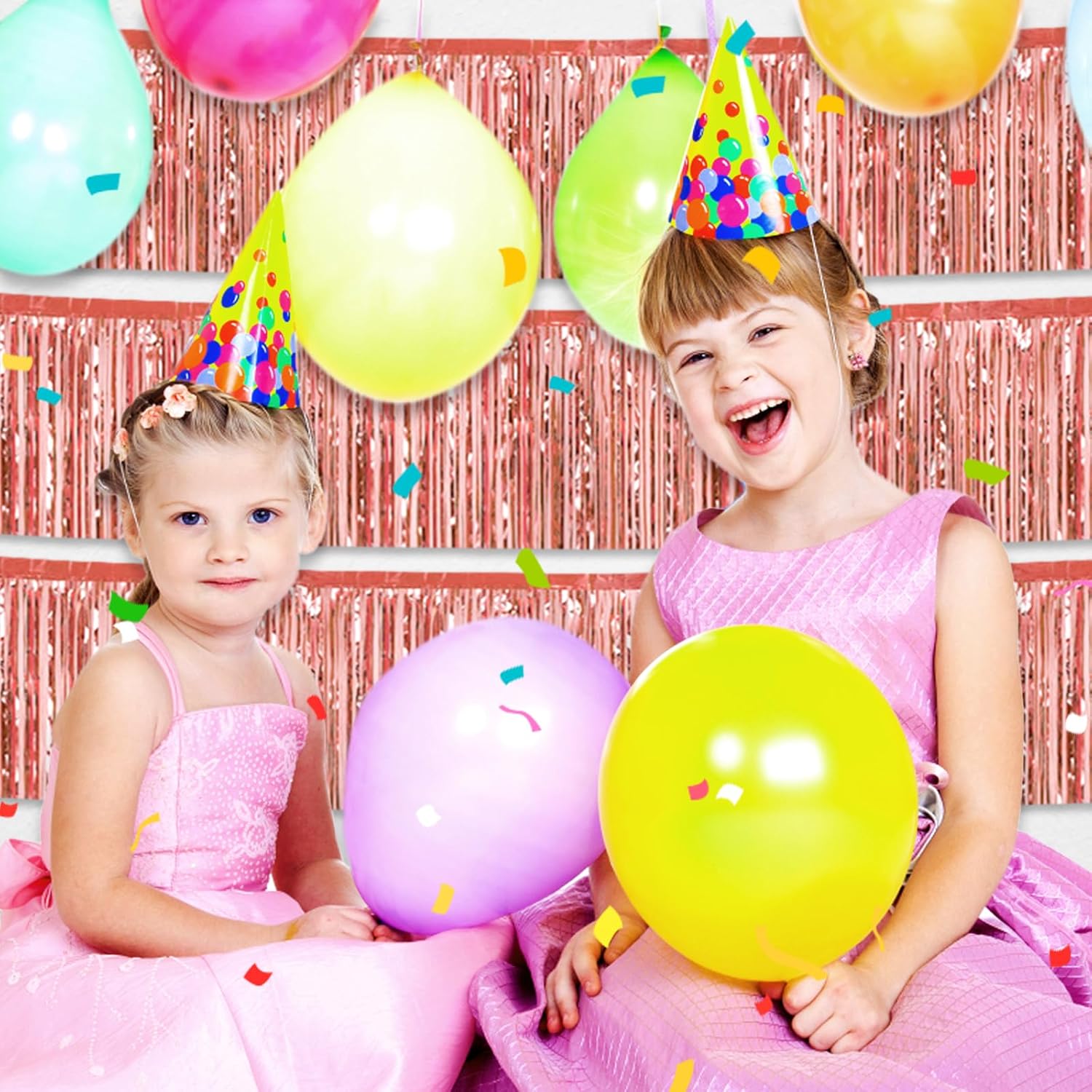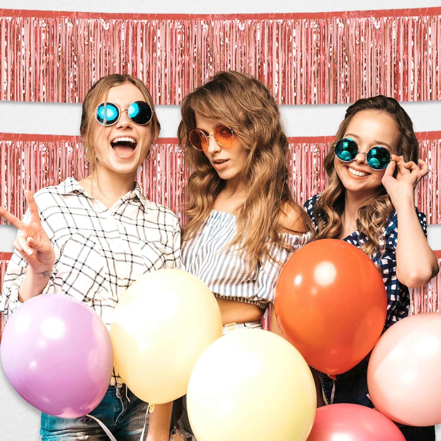 4 Pack 10 Feet Rose Gold Foil Fringe Garland Metallic Tinsel Streamers Banner Wall Hanging Curtain Backdrop for Parade Floats, Wedding, Graduate, Mother's Day, Birthday Party Decoration