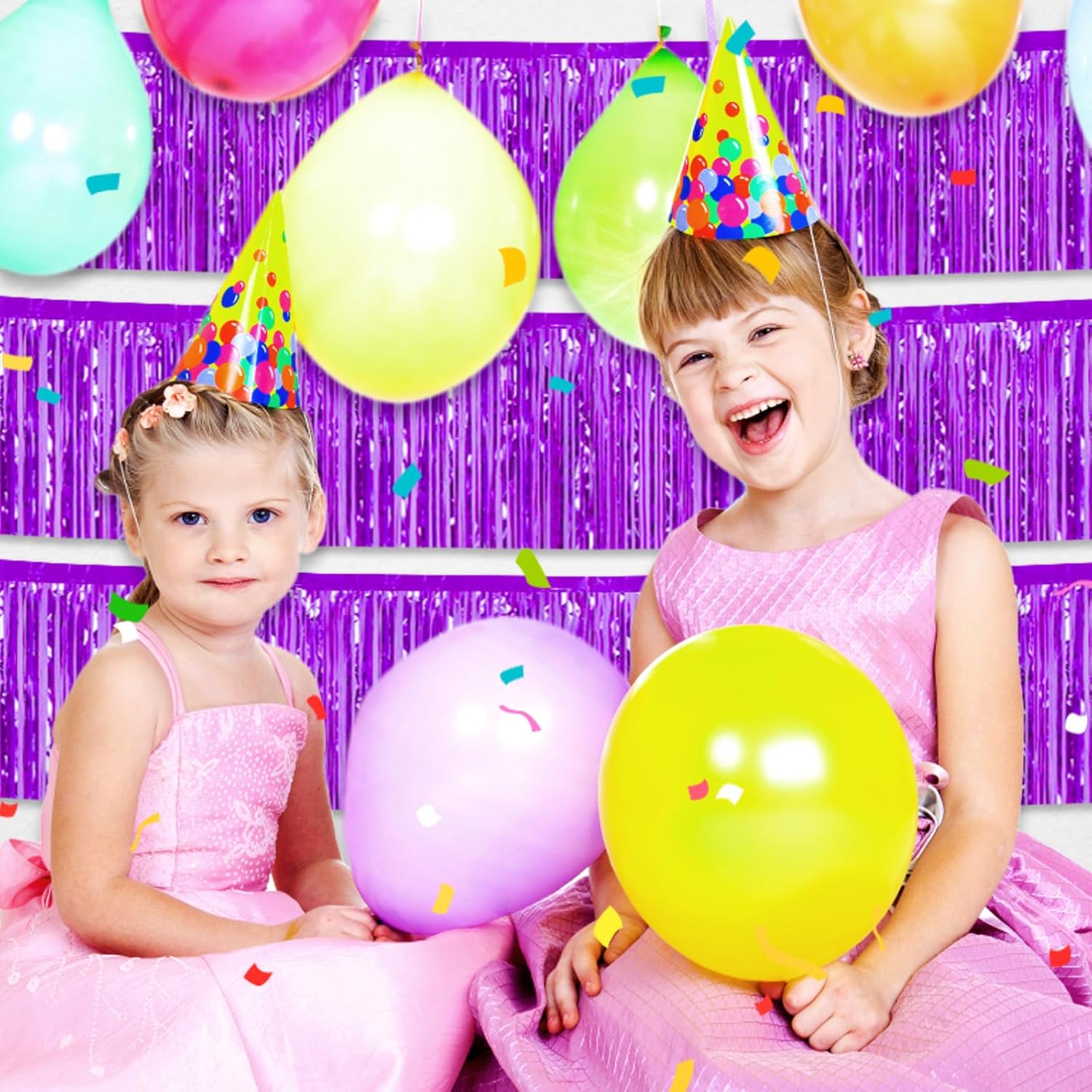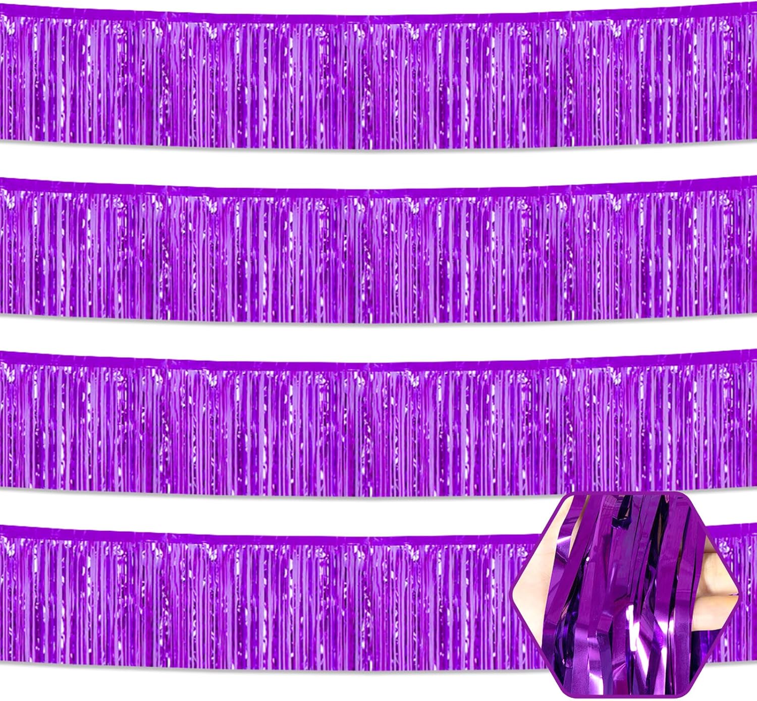 4 Pack 10 Feet Purple Foil Fringe Garland Metallic Tinsel Streamers Banner Wall Hanging Curtain Backdrop for Parade Floats, Wedding, Graduate, Mother's Day, Birthday Party Decoration
