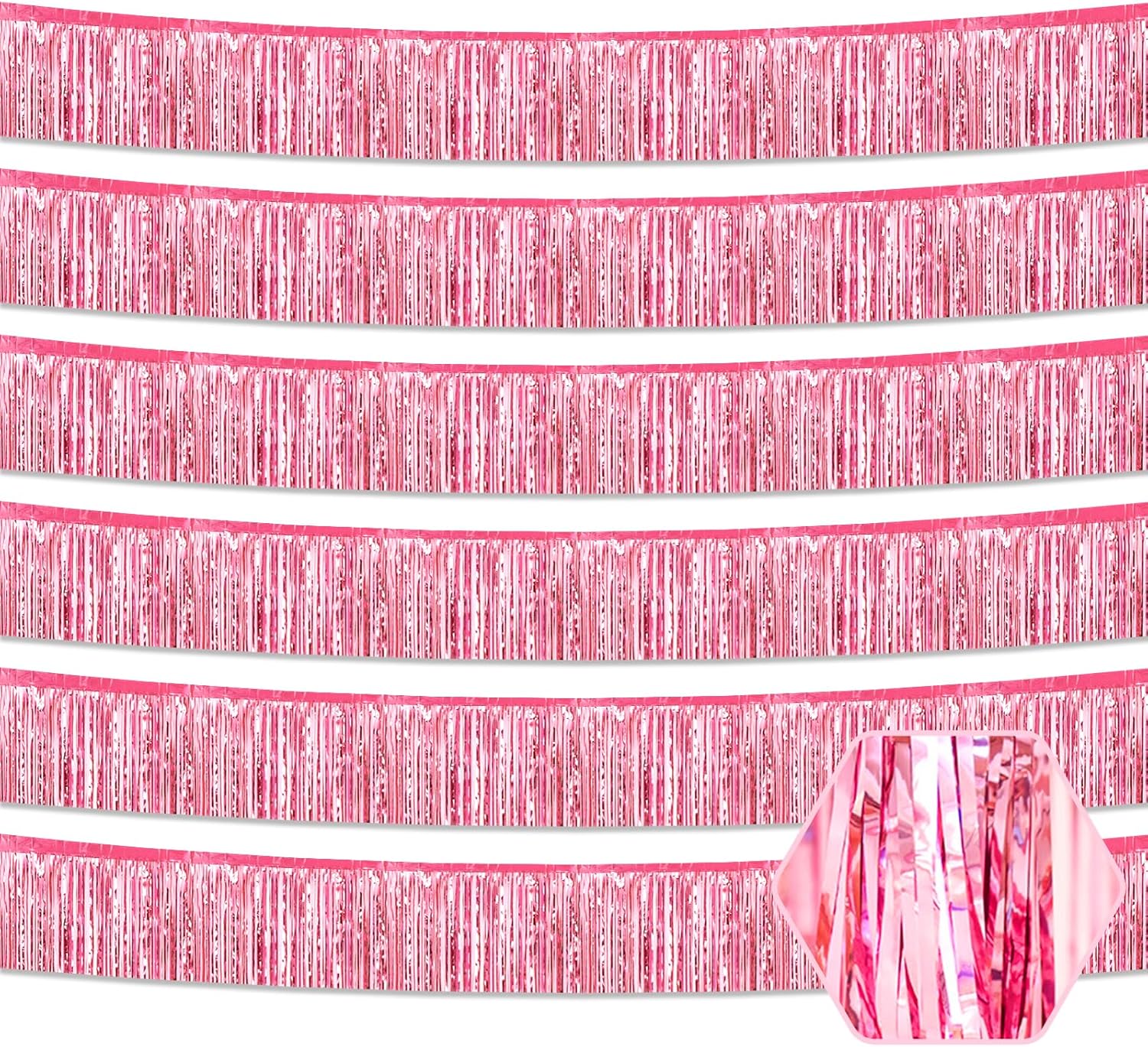 6 Pack 10 Feet Pink Foil Fringe Garland Metallic Tinsel Streamers Banner Wall Hanging Curtain Backdrop for Parade Floats, Birthday, Graduate, Mother's Day, Wedding Party Decoration