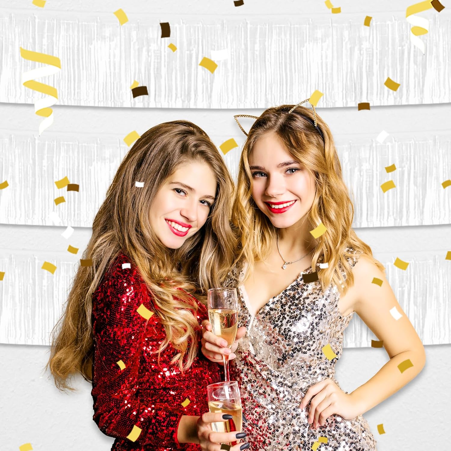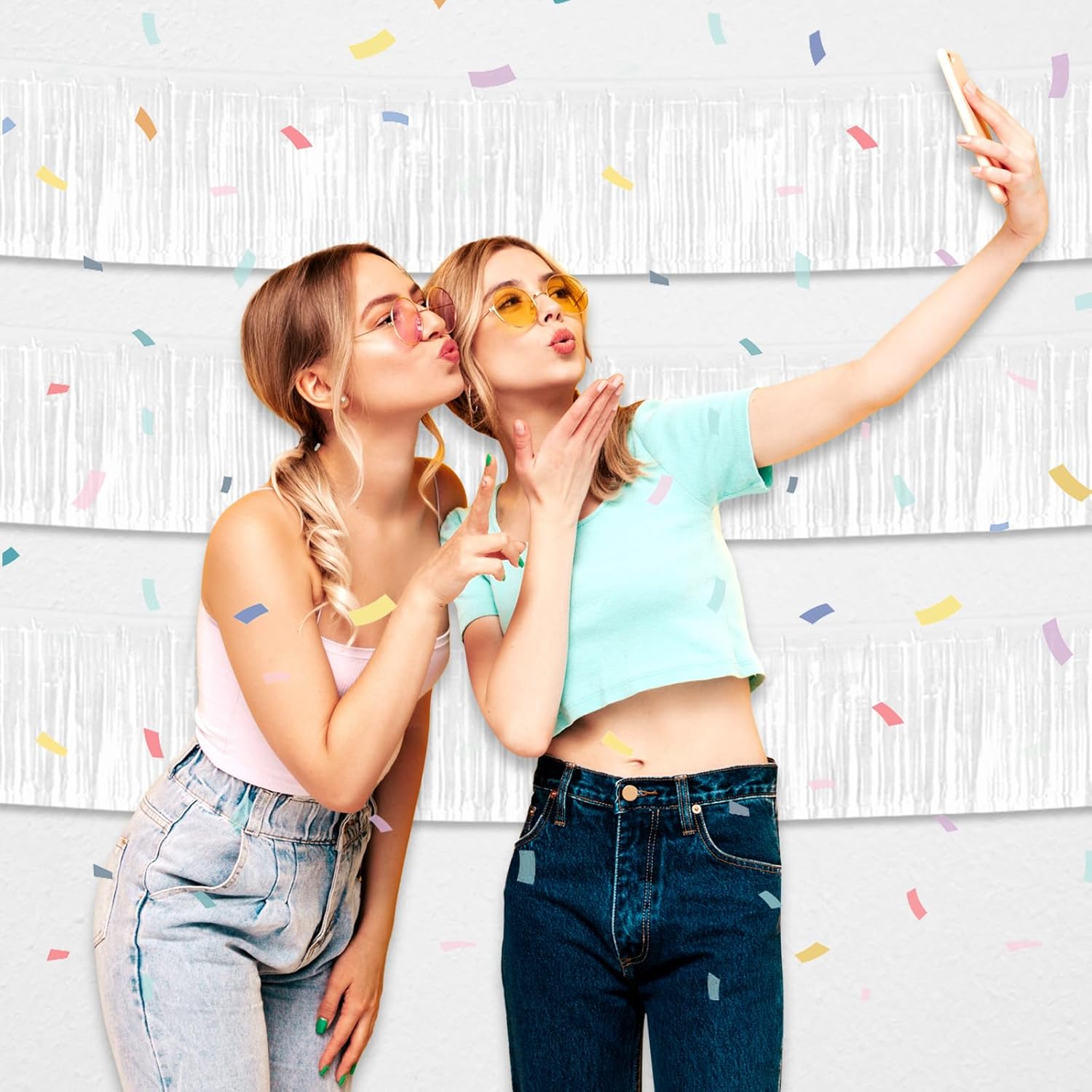 6 Pack 10 Feet White Foil Fringe Garland Metallic Tinsel Streamers Banner Wall Hanging Curtain Backdrop for Parade Floats, Birthday, Graduate, Mother's Day, Wedding Party Decoration