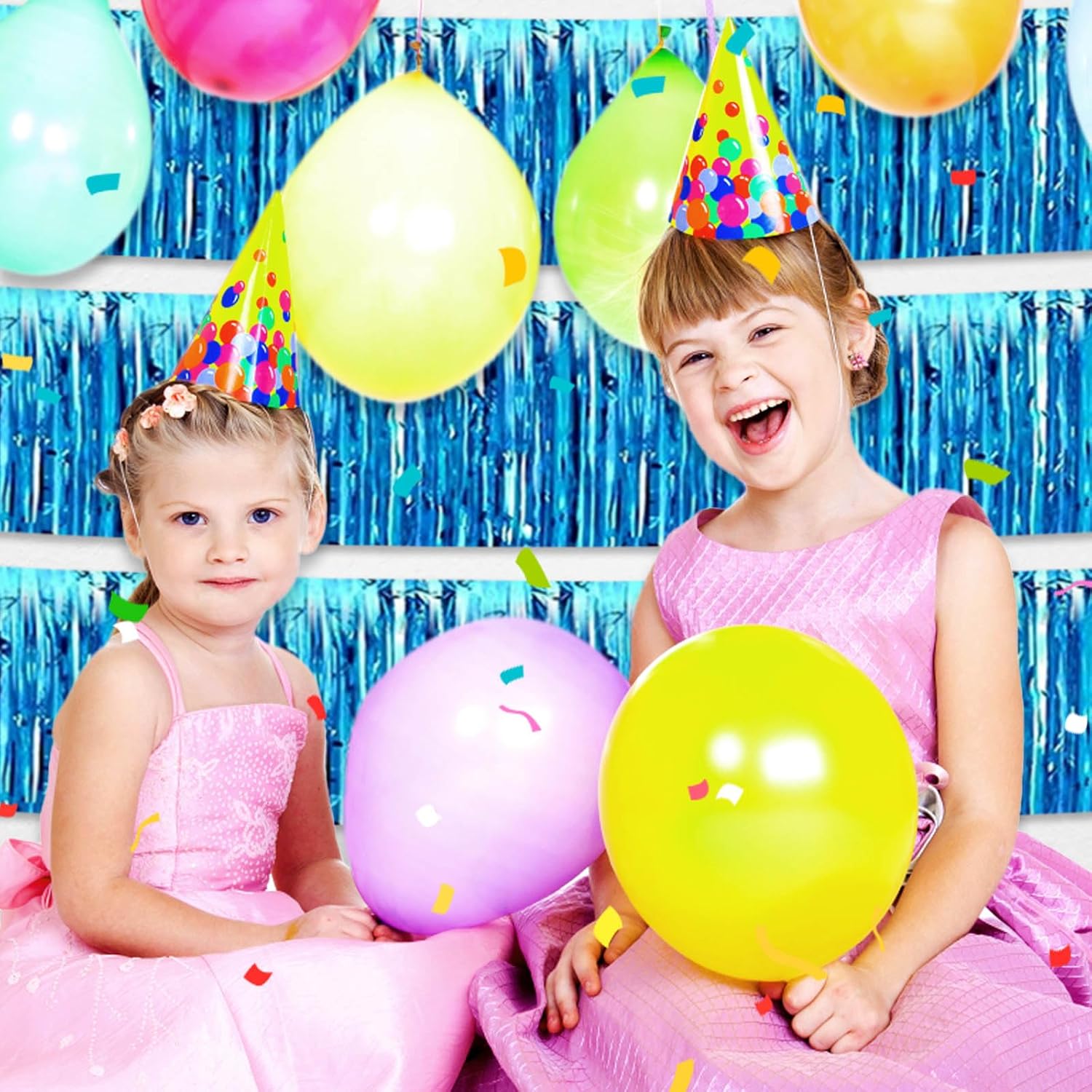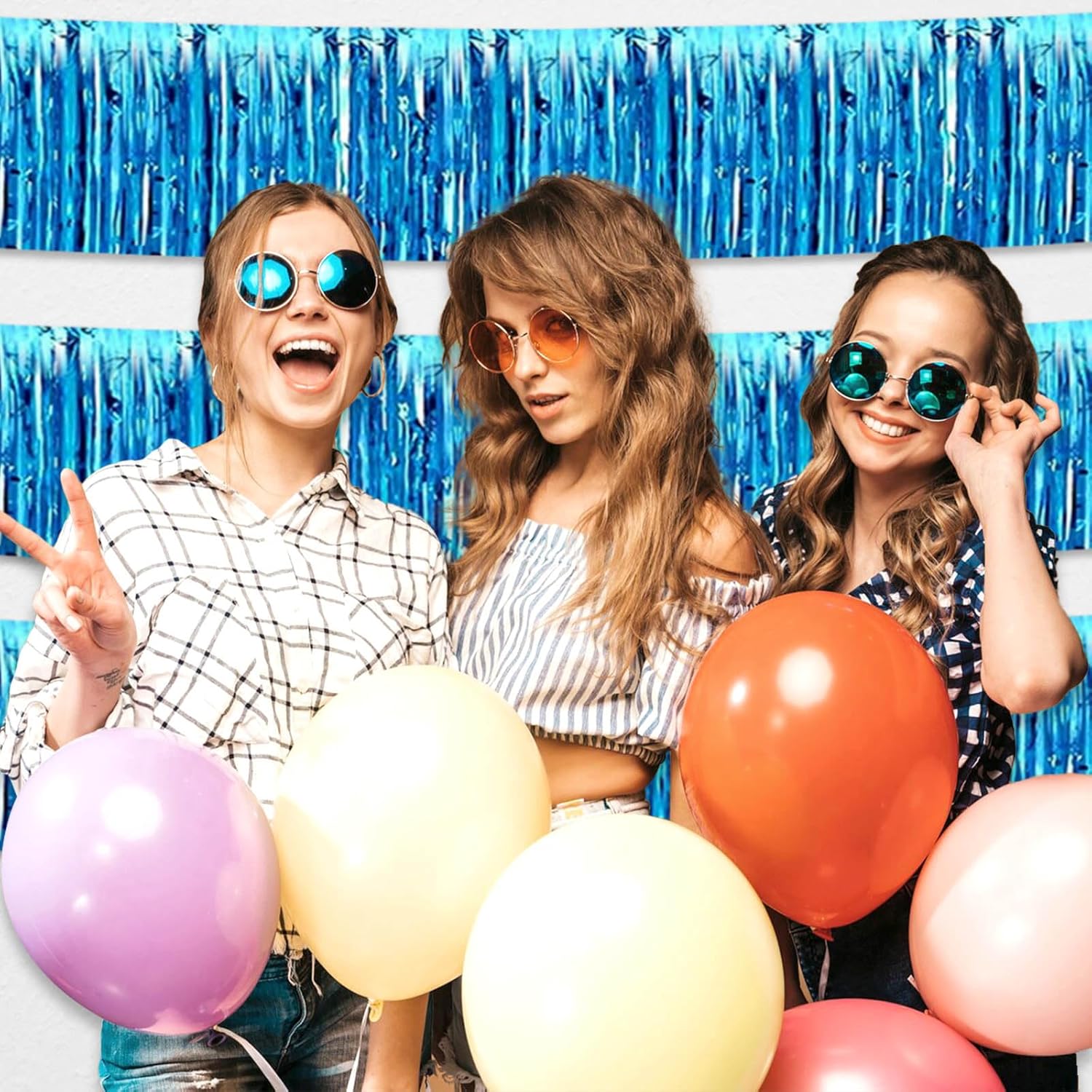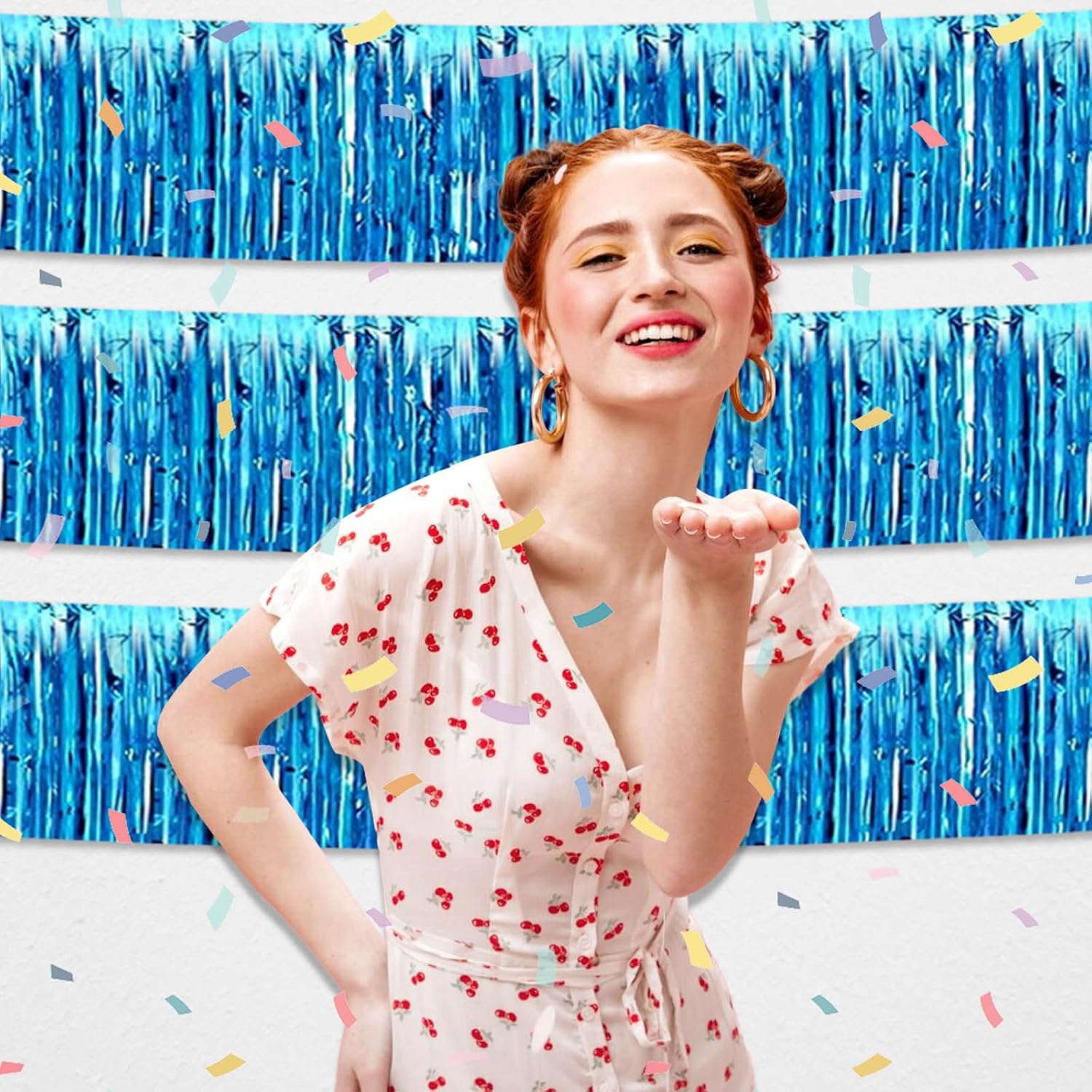 3 Pack 10 Long Lake Blue Metallic Foil Fringe Garland Wall Hanging Tassle Banner, Mother's Day, Easter, Parade Floats, Birthday, Theme Party, Wedding Party Decorations