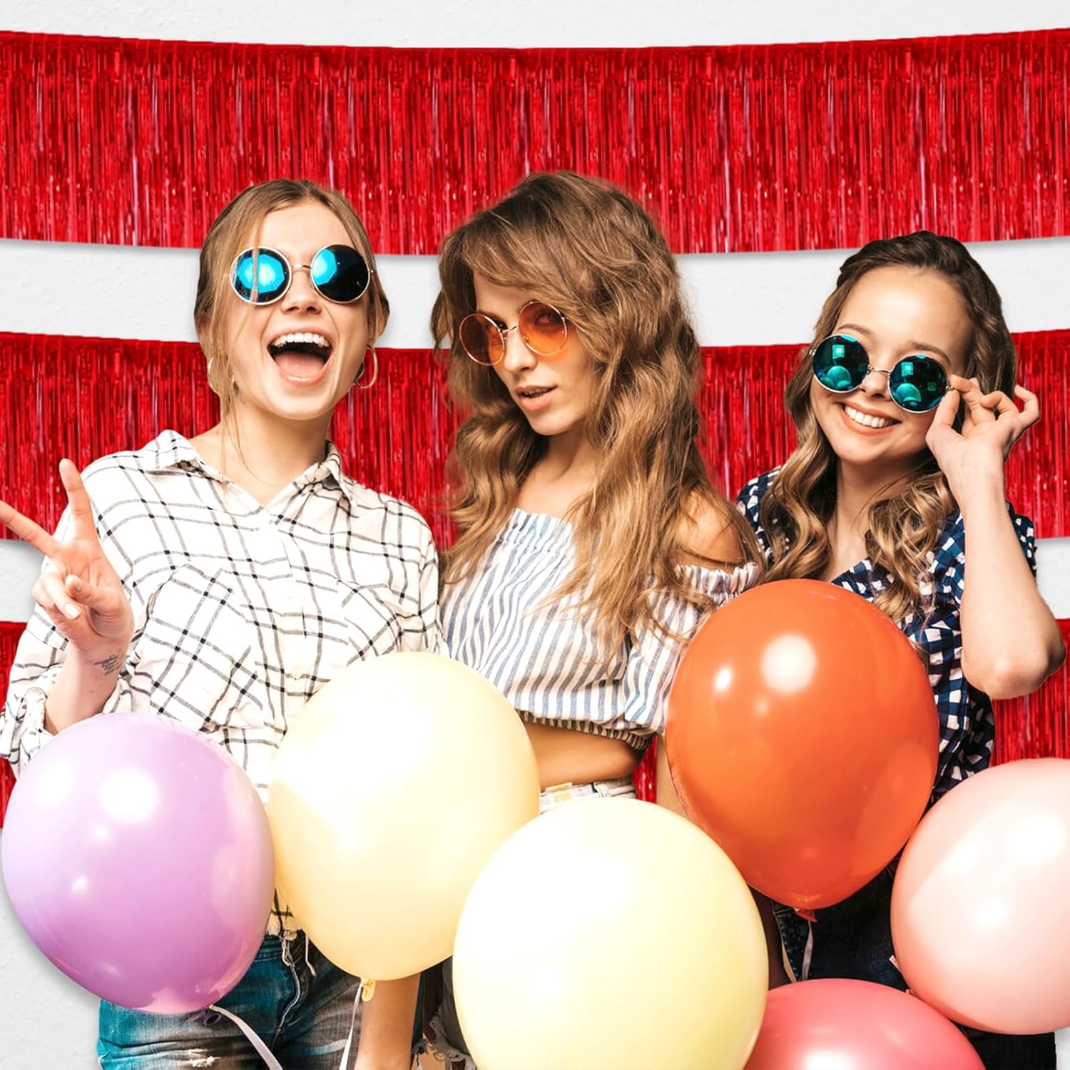 6 Pack 10 Feet Red Foil Fringe Garland Metallic Tinsel Streamers Banner Wall Hanging Curtain Backdrop for Parade Floats, Birthday, Graduate, Mother's Day, Wedding Party Decoration