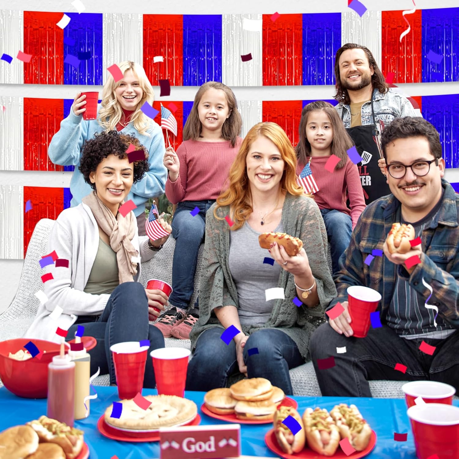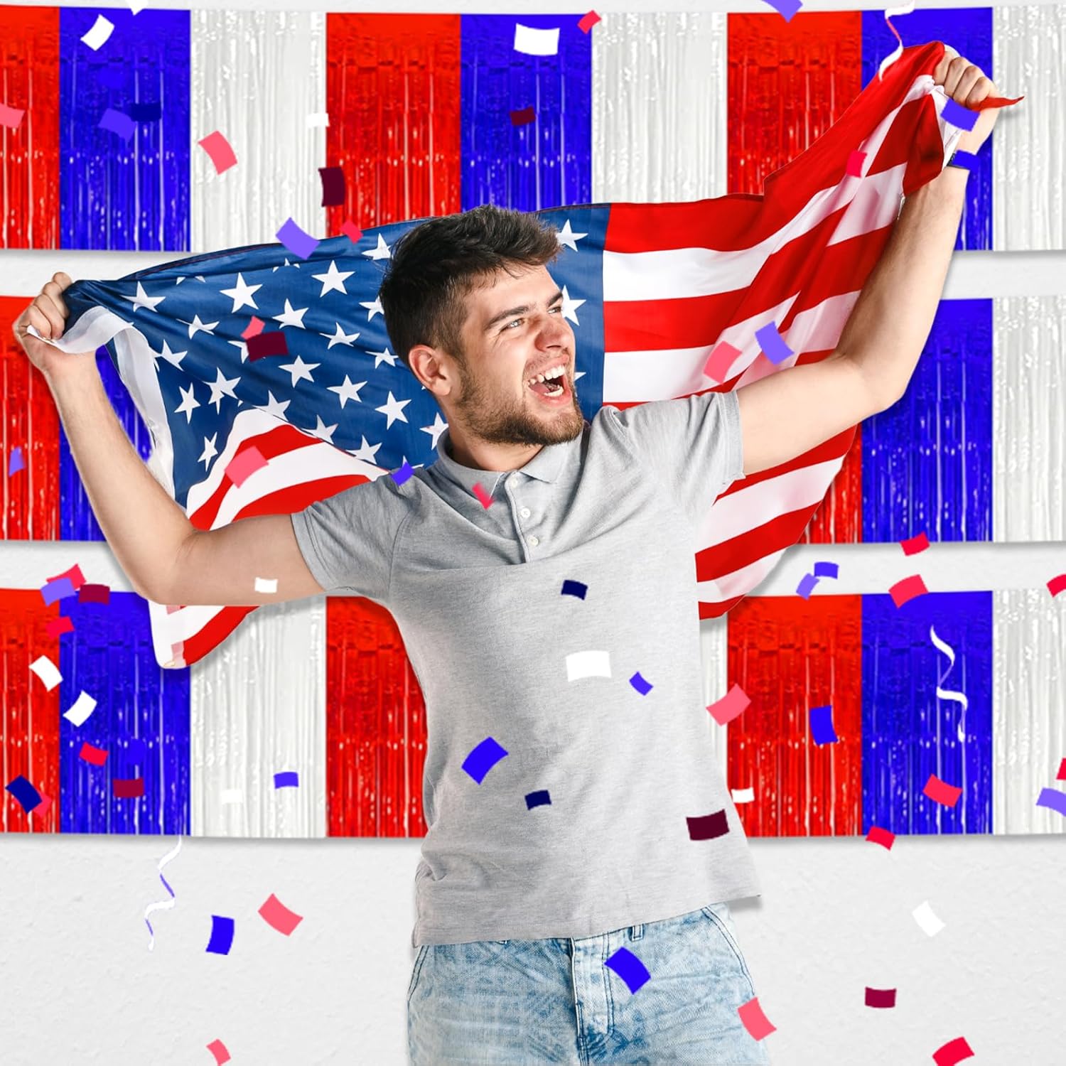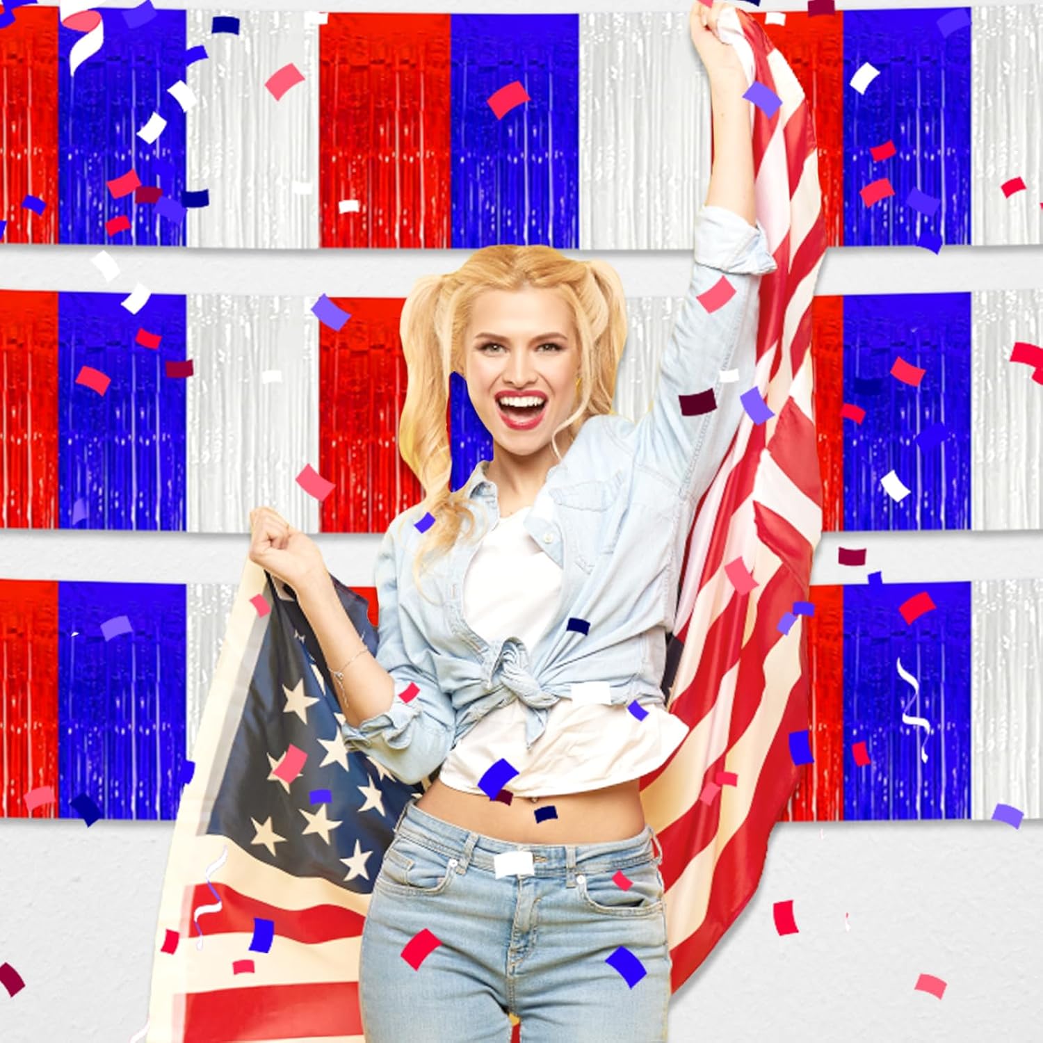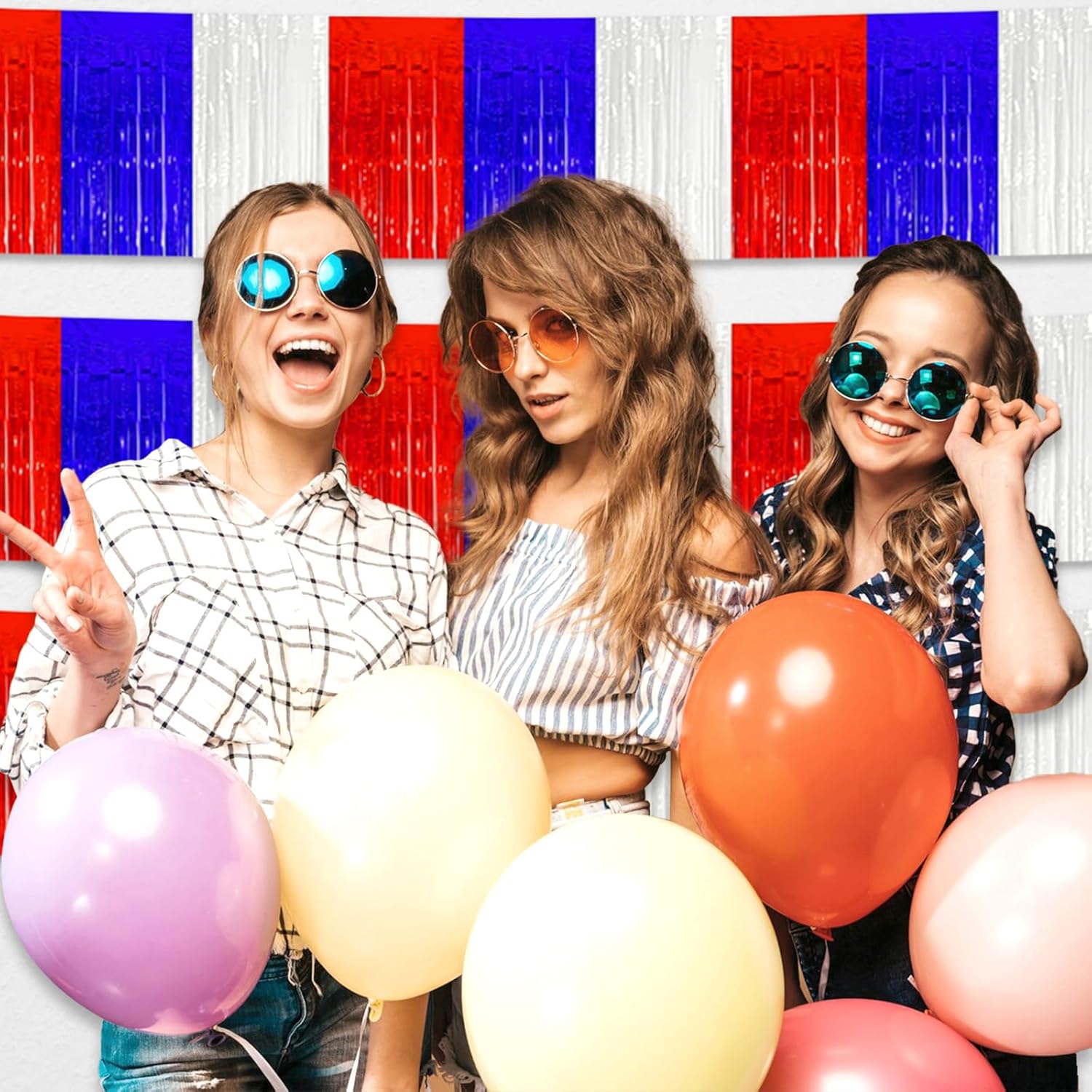3 Pack 10 Long White Blue Red Metallic Foil Fringe Garland Wall Hanging Tassle Banner, Mother's Day, Easter, Parade Floats, Birthday, Theme Party, Wedding Party Decorations
