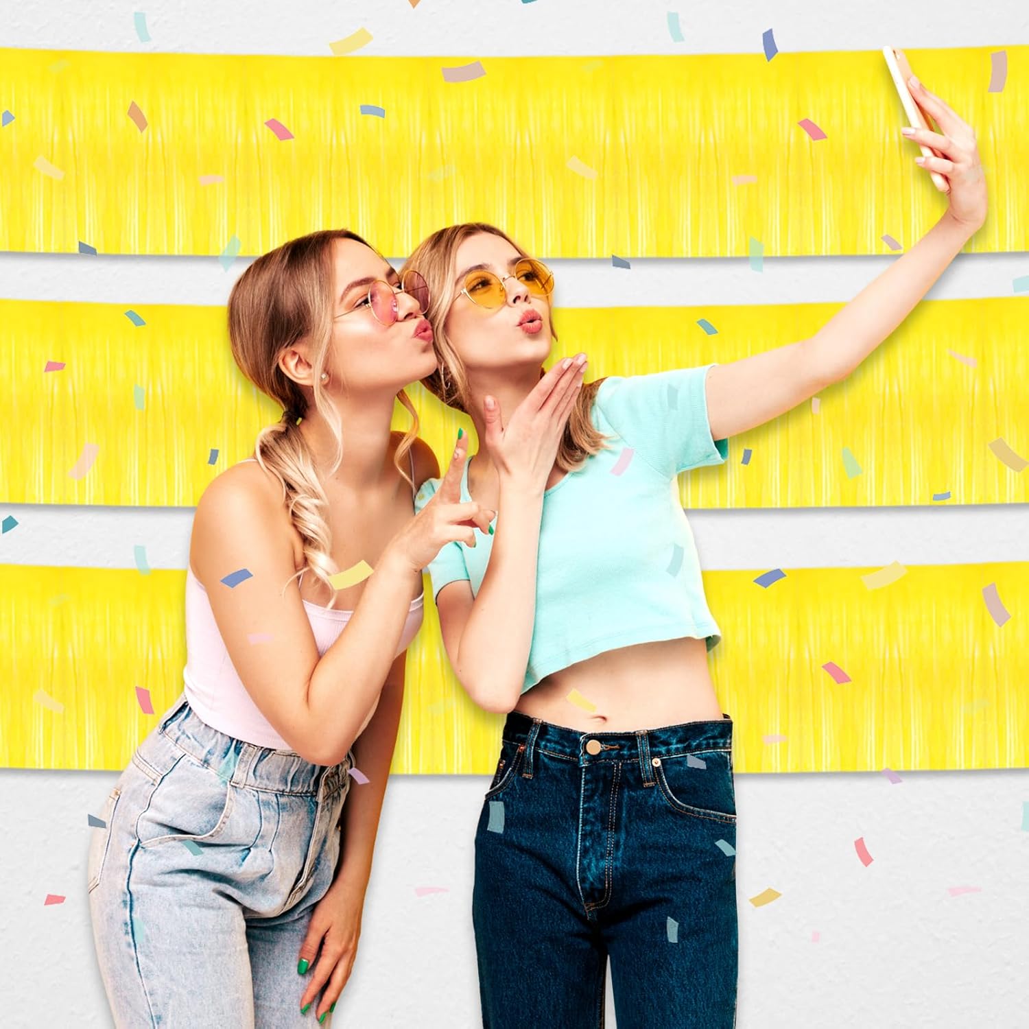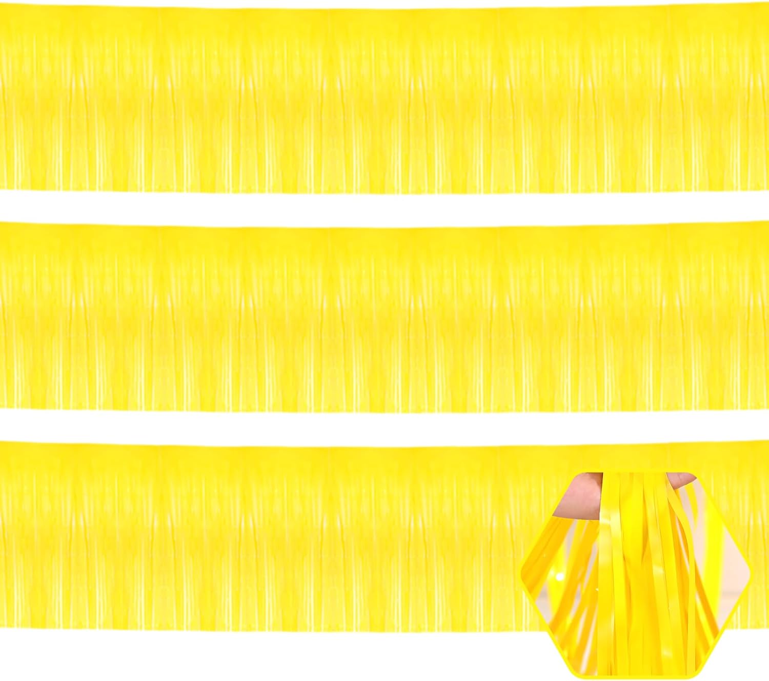 3 Pack 10 Long Yellow Metallic Foil Fringe Garland Wall Hanging Tassle Banner, Mother's Day, Easter, Parade Floats, Birthday, Theme Party, Wedding Party Decorations
