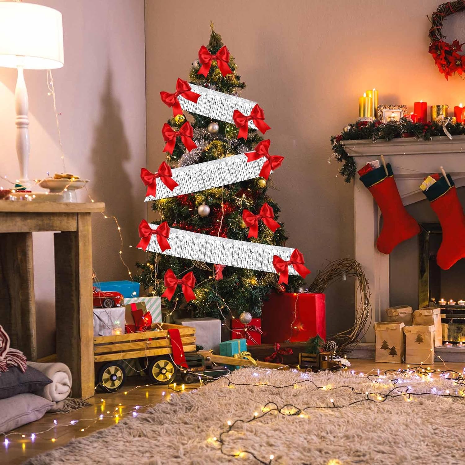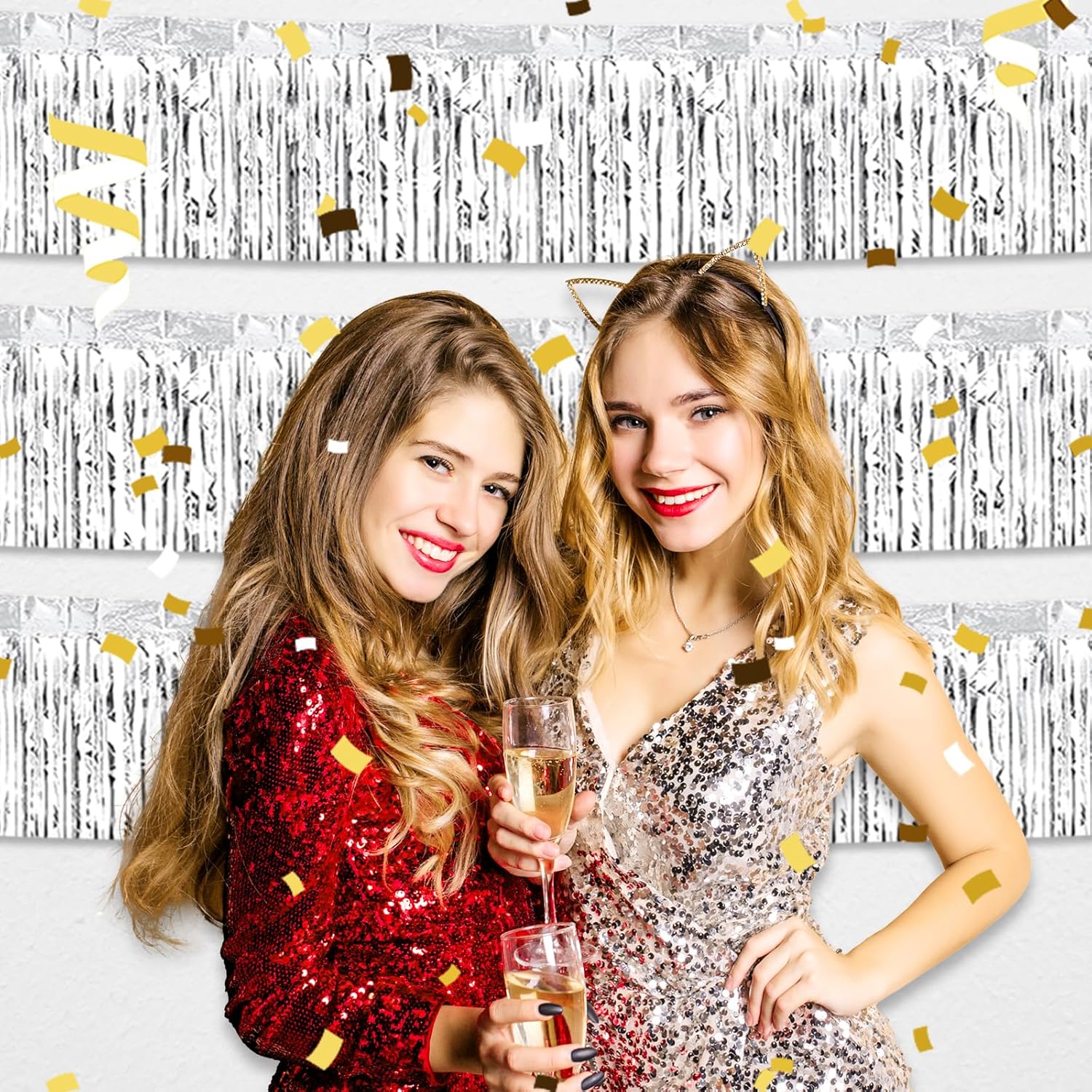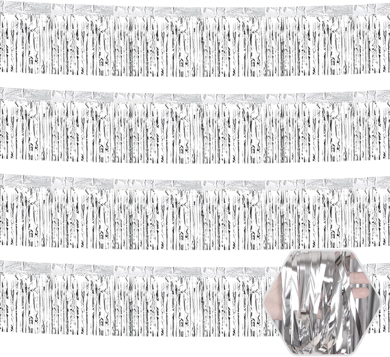 4 Pack 10 Feet Silver Foil Fringe Garland Metallic Tinsel Streamers Banner Wall Hanging Curtain Backdrop for Parade Floats, Wedding, Graduate, Mother's Day, Birthday Party Decoration