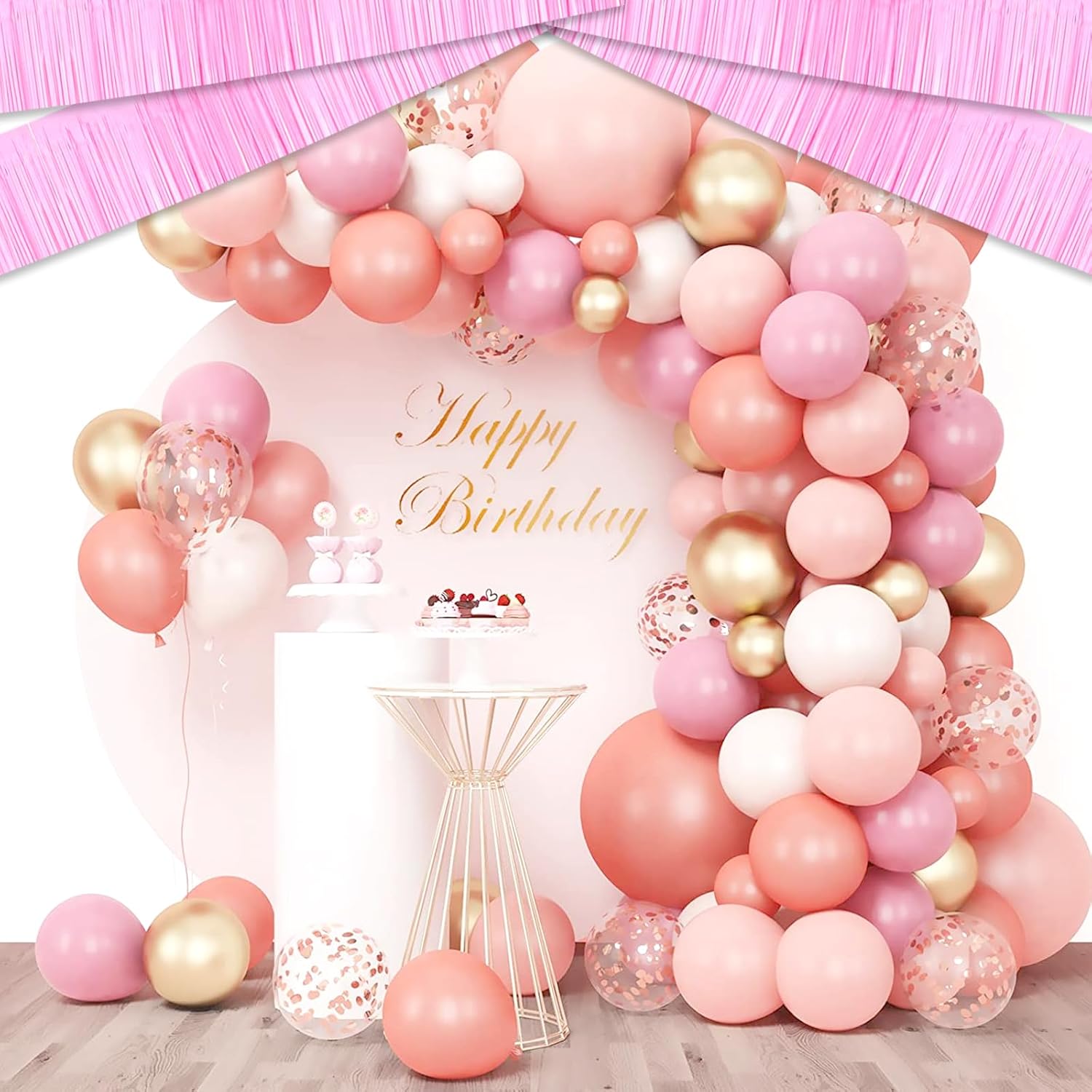 4 Pack 10 Feet Macaron Pink Foil Fringe Garland Metallic Tinsel Streamers Banner Wall Hanging Curtain Backdrop for Parade Floats, Wedding, Graduate, Mother's Day, Birthday Party Decoration