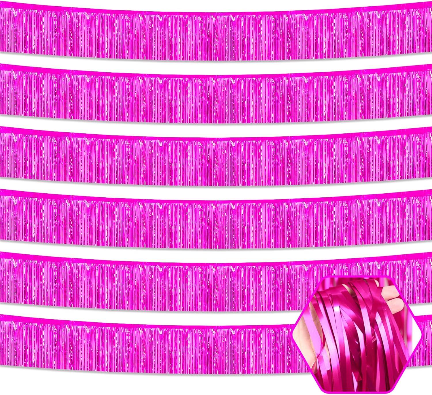 6 Pack 10 Feet Rose Red Foil Fringe Garland Metallic Tinsel Streamers Banner Wall Hanging Curtain Backdrop for Parade Floats, Birthday, Graduate, Mother's Day, Wedding Party Decoration
