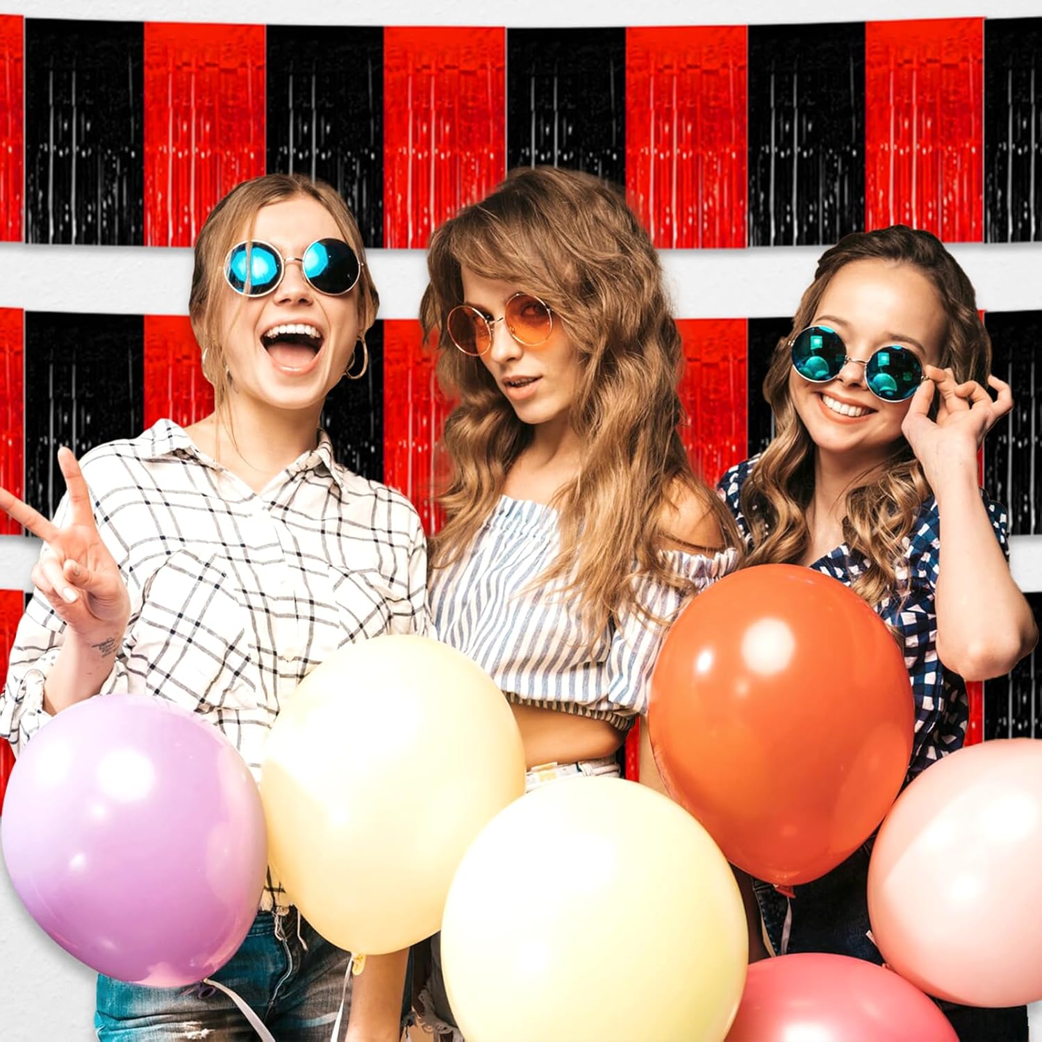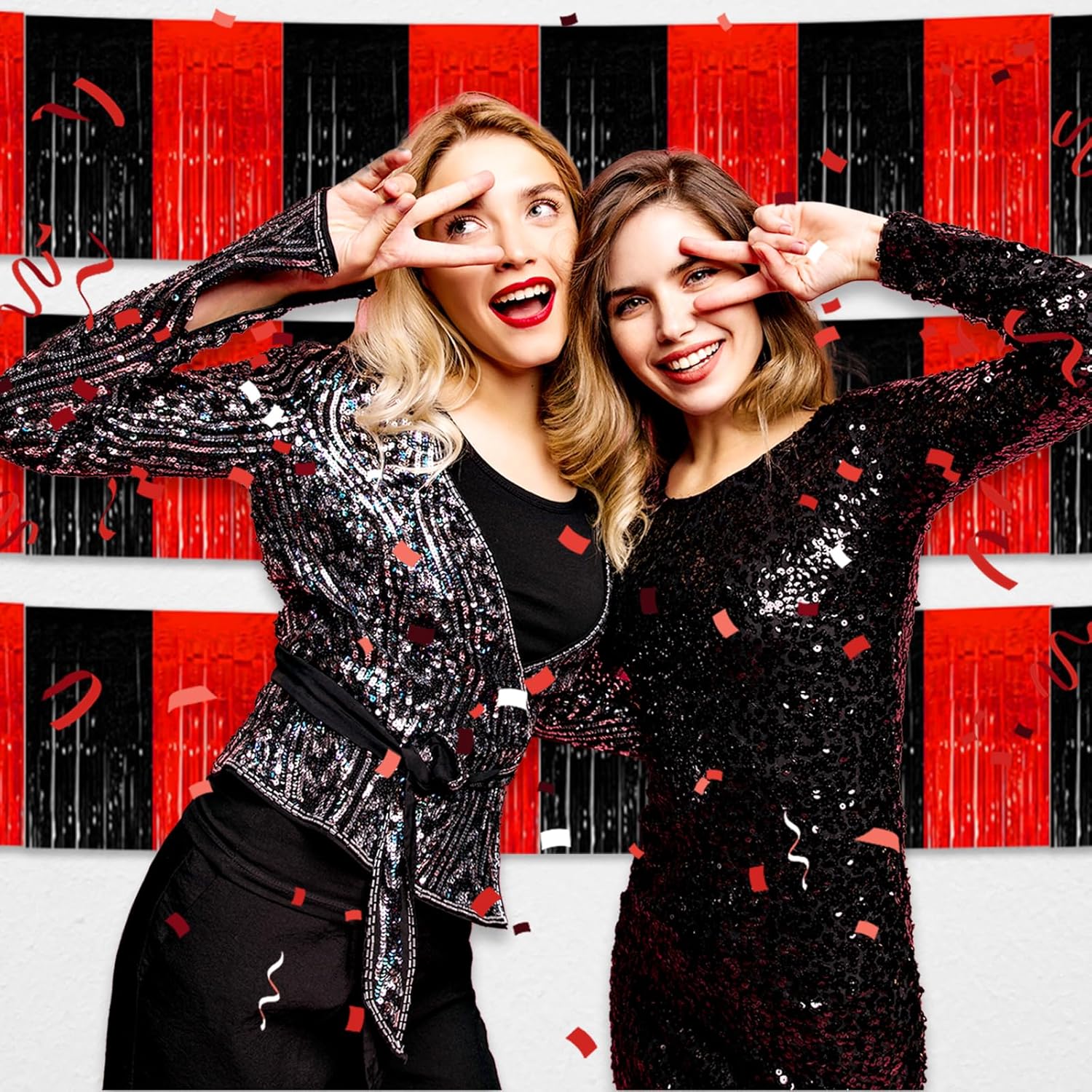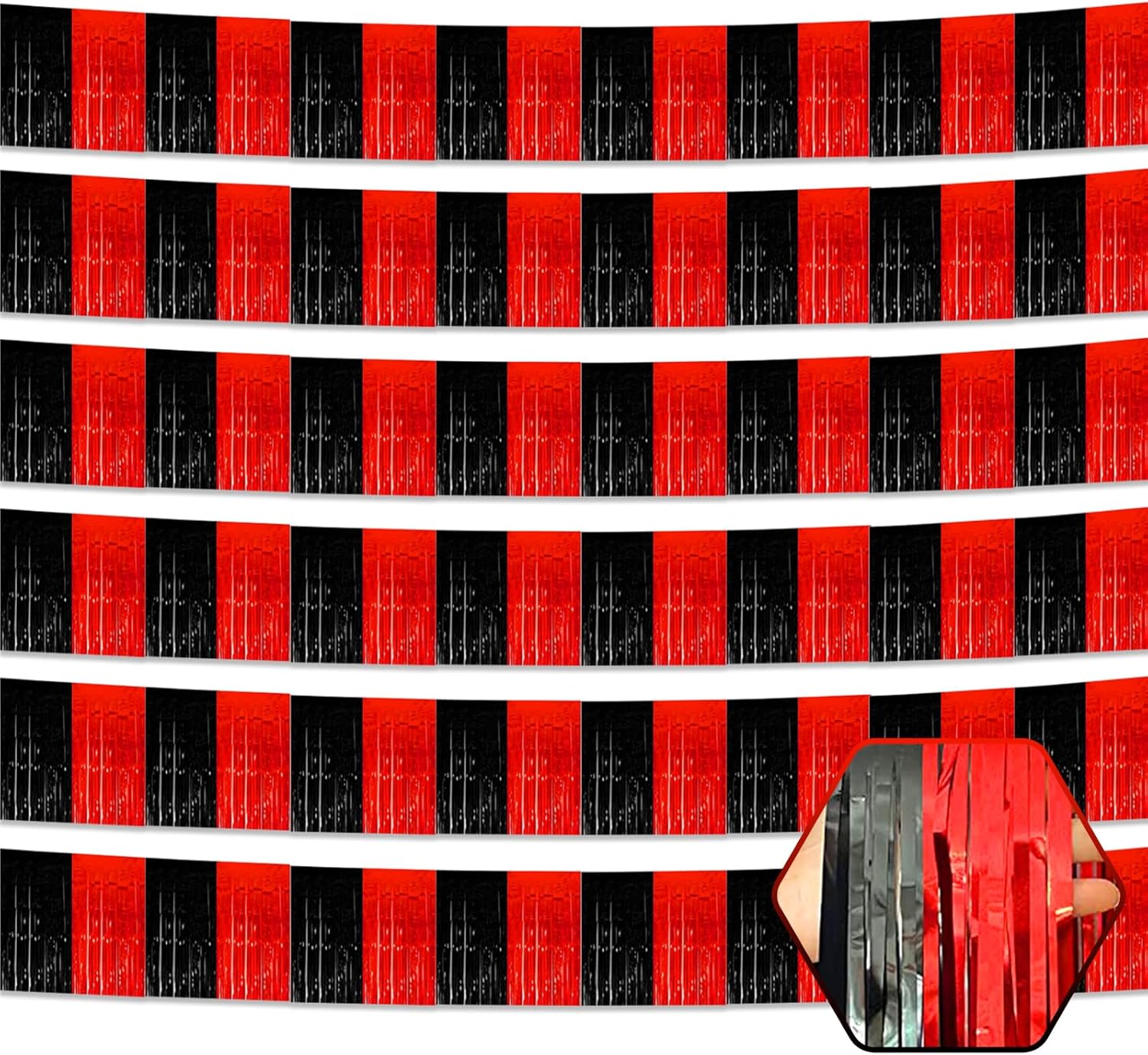 6 Pack 10 Feet Black Red Foil Fringe Garland Metallic Tinsel Streamers Banner Wall Hanging Curtain Backdrop for Parade Floats, Birthday, Graduate, Mother's Day, Wedding Party Decoration