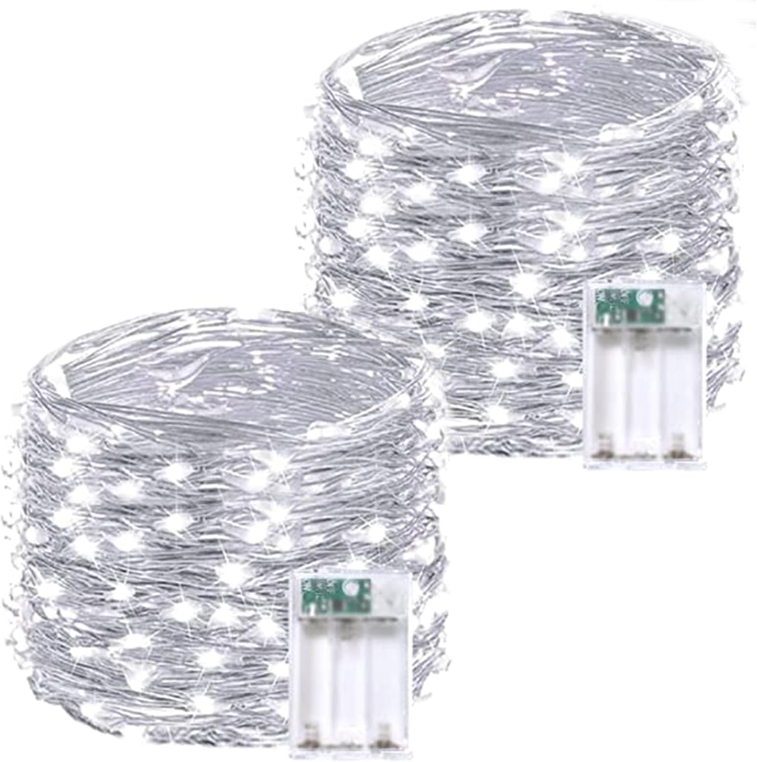 • Ultra-Bright and Durable Battery-Operated Fairy Lights: Each string includes 60 super-bright LEDs, 20 feet of sturdy silver color copper wire, and a battery case with a timer, ensuring longevity and reliability. These cool white lights offer a bright, modern glow, perfect for creating an elegant ambiance. Ideal for indoor and outdoor decor, such as curtain, garland, Christmas tree, bedroom, centerpieces, fireplace, porch, patio, garden, party, and all kinds of holiday decorations.