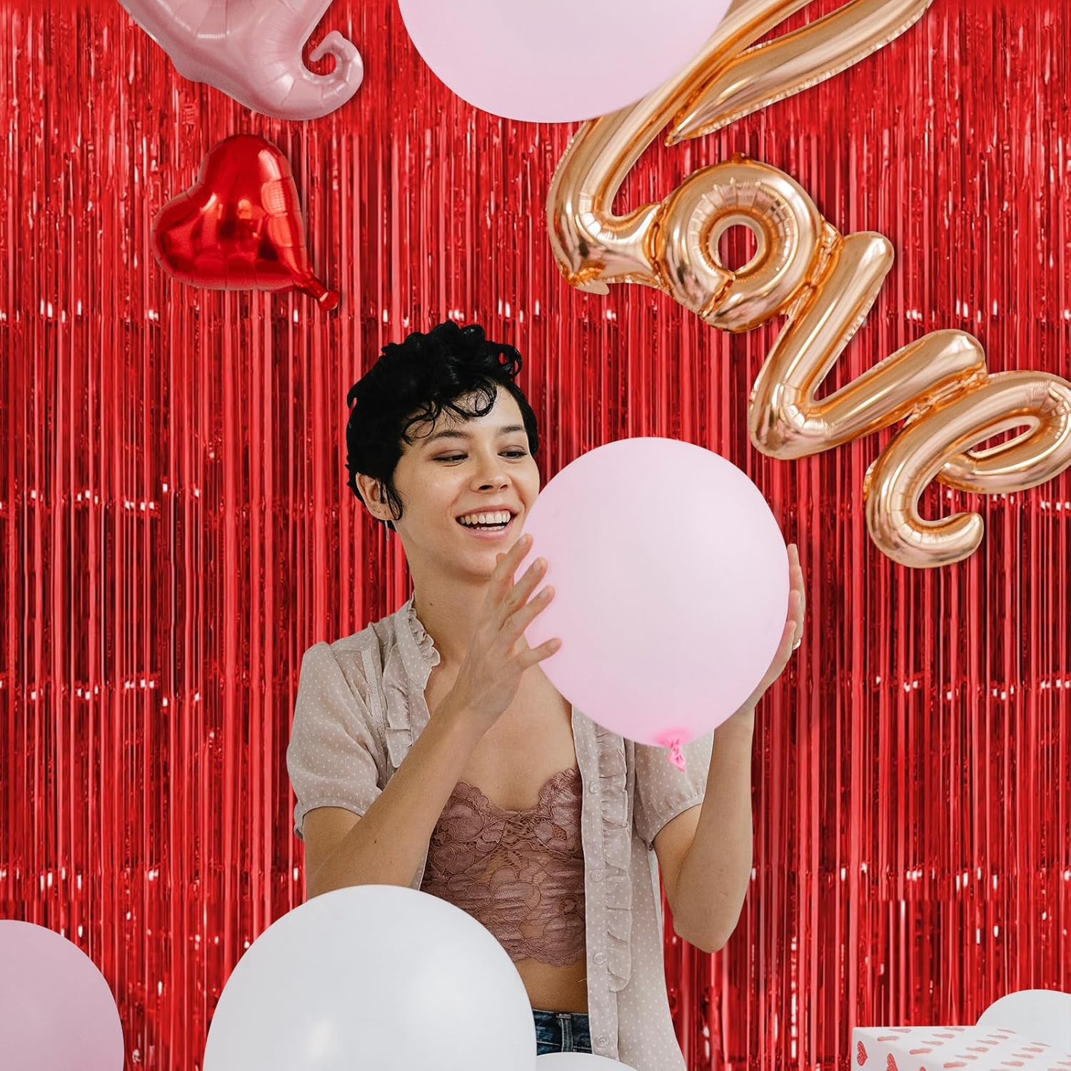 10 Pack Red Backdrop Curtain 3.2ft x 8.2ft Metallic Tinsel Foil Fringe Curtains Photo Booth Background for Birthday Party Decoration Baby Shower Engagement Wedding Christmas Decoration (Red)
