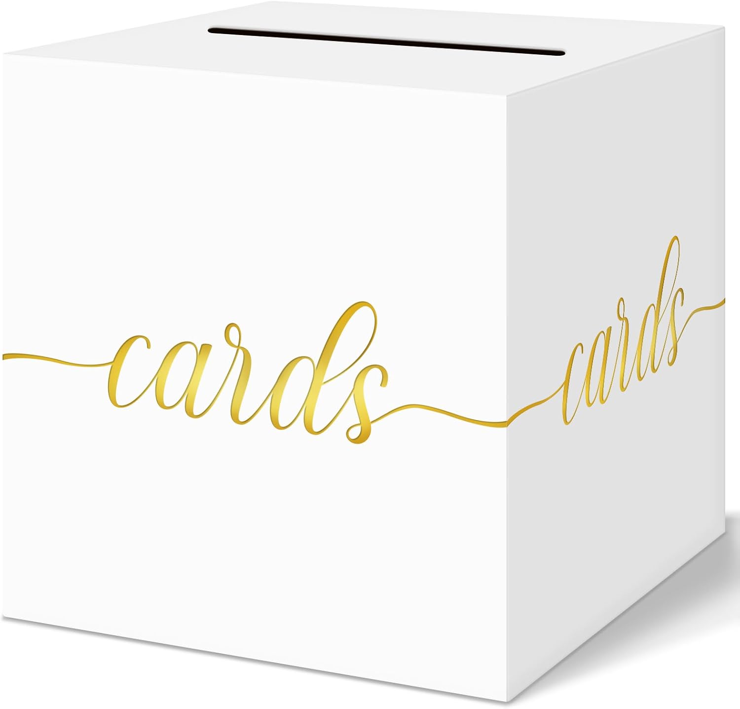 • Gold Foil White Wedding Card Box Size: Pack of 1, paper card box measures 8.7 x 8.7 x 8.7 inches, large size to hold all sizes of envelope cards for weddings or parties.(US copyright protection)
