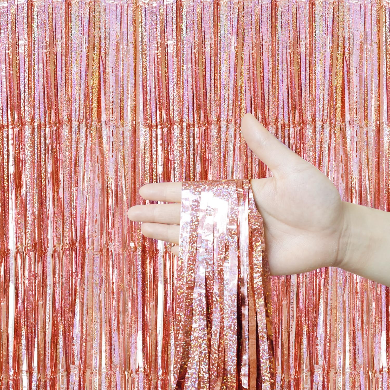 QRabbit 4 Pack Foil Fringe Backdrop Curtains, Rose Gold Party Streamers Photo Booth Props for Birthday Graduation Engagement Wedding Baby Shower Christmas Party Decorations