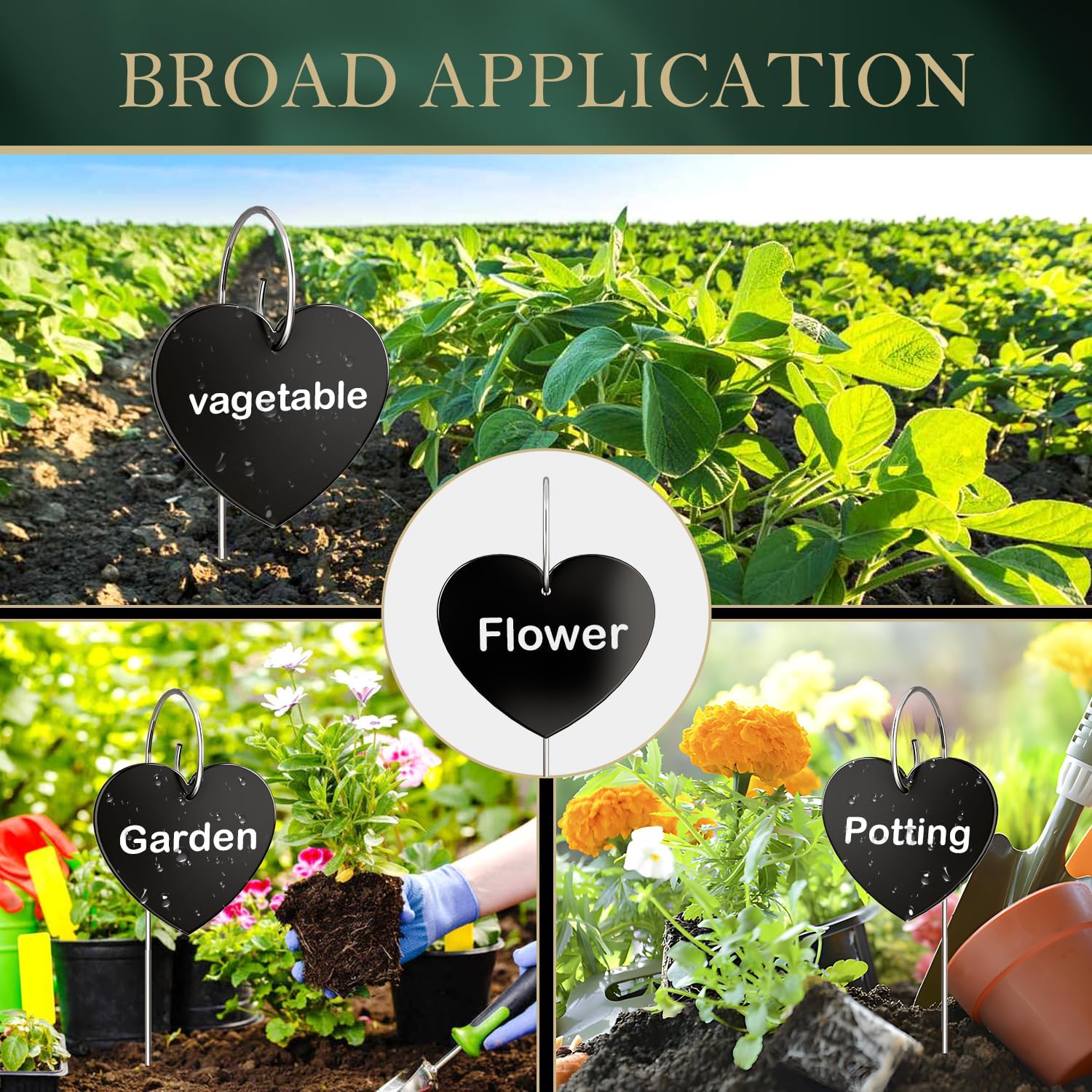 60-Pack Iron Metal Heart Shaped Garden Markers Weatherproof Metal Plant Labels Large Planting Seedling Stake Signs, for Seedlings Herbs Vegetable Greenhouse Gifts with White Marker Pen Labels