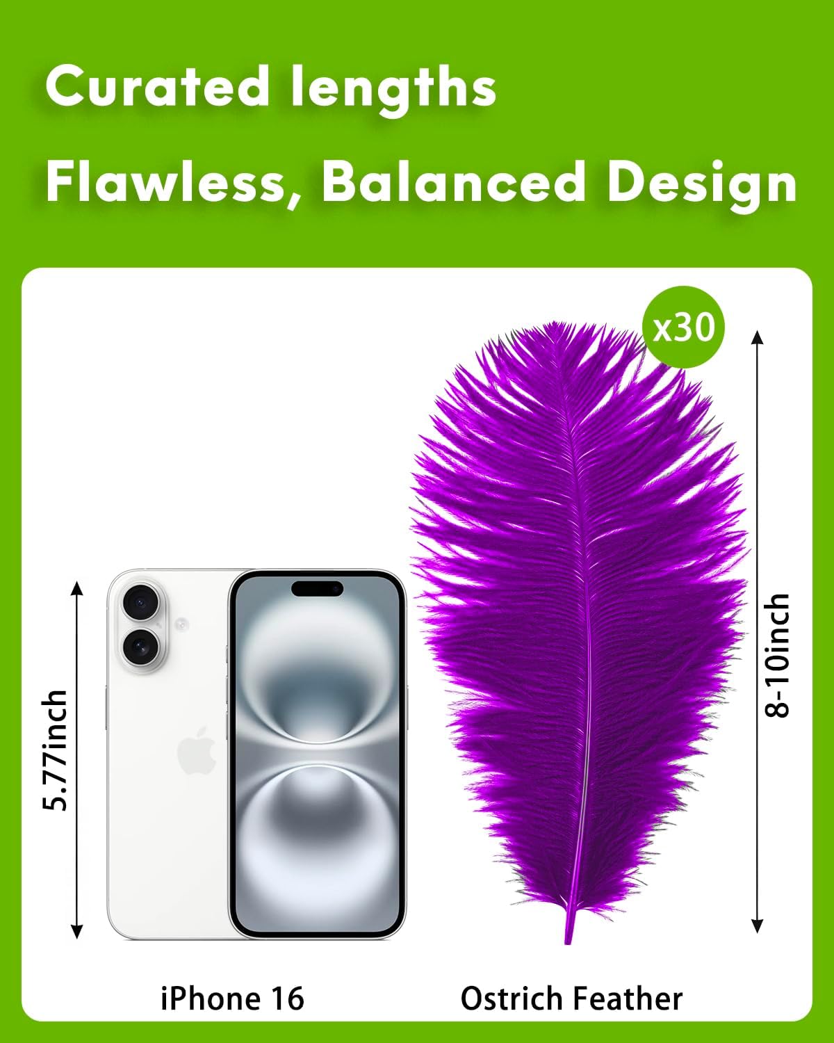 NEWONG 30pcs Purple Ostrich Feathers Natural Bulk 8-10inch(20-25cm) Vase Craft Wedding Home Party Centerpieces Christmas Day Decoration