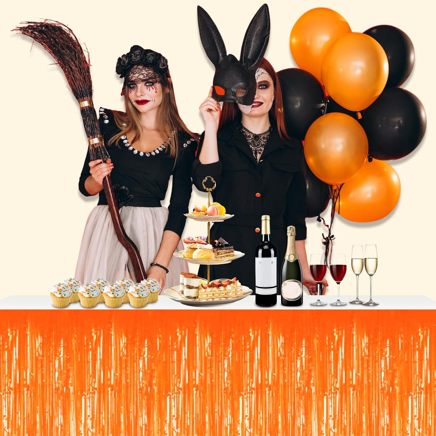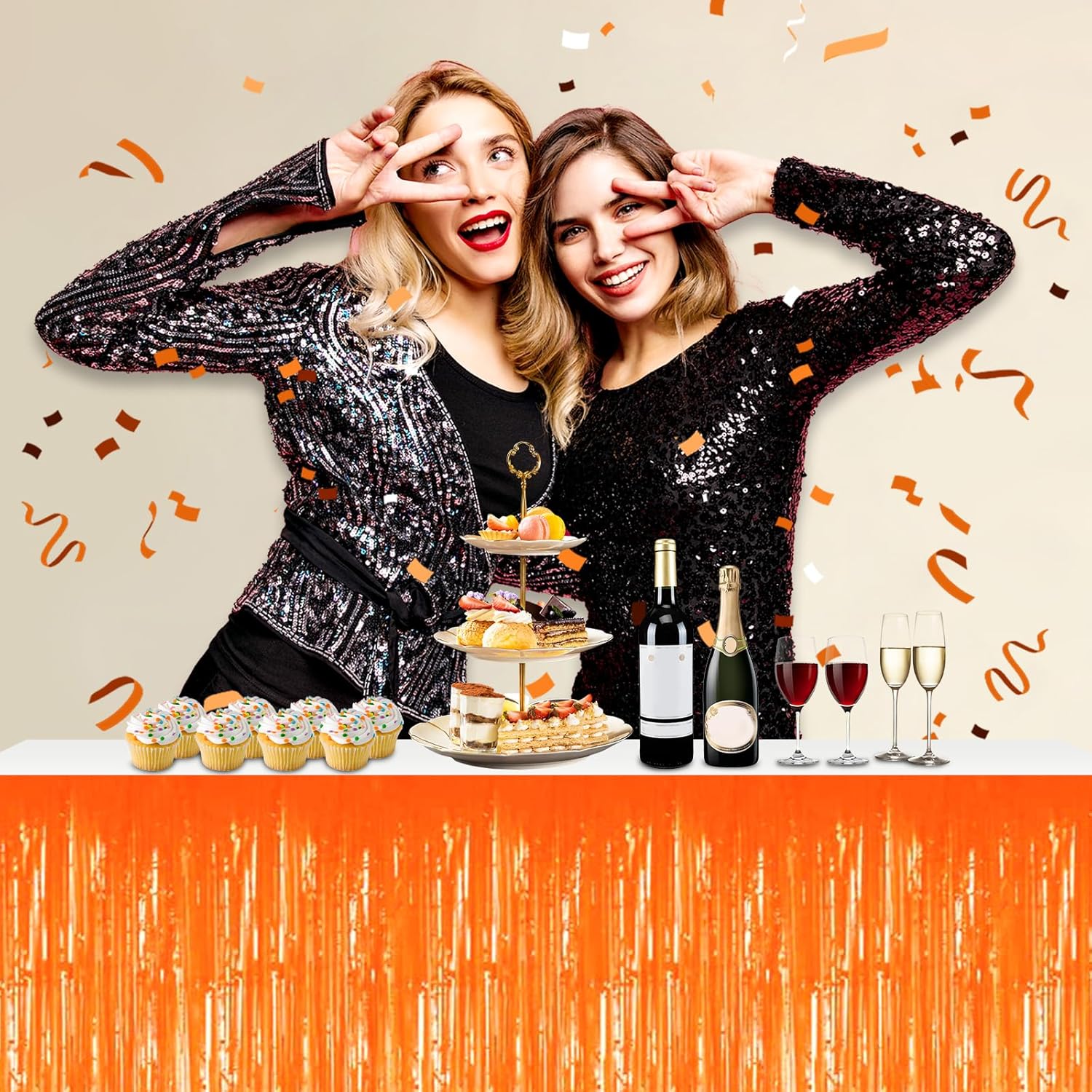 3 Pack 29x108 Inch Macaron Orange Foil Fringe Table Skirts Metallic Banner for Tinsel Streamer Garland Backdrop for Parade Floats Wedding Thanksgiving Birthday Christmas Halloween Party Decoration
