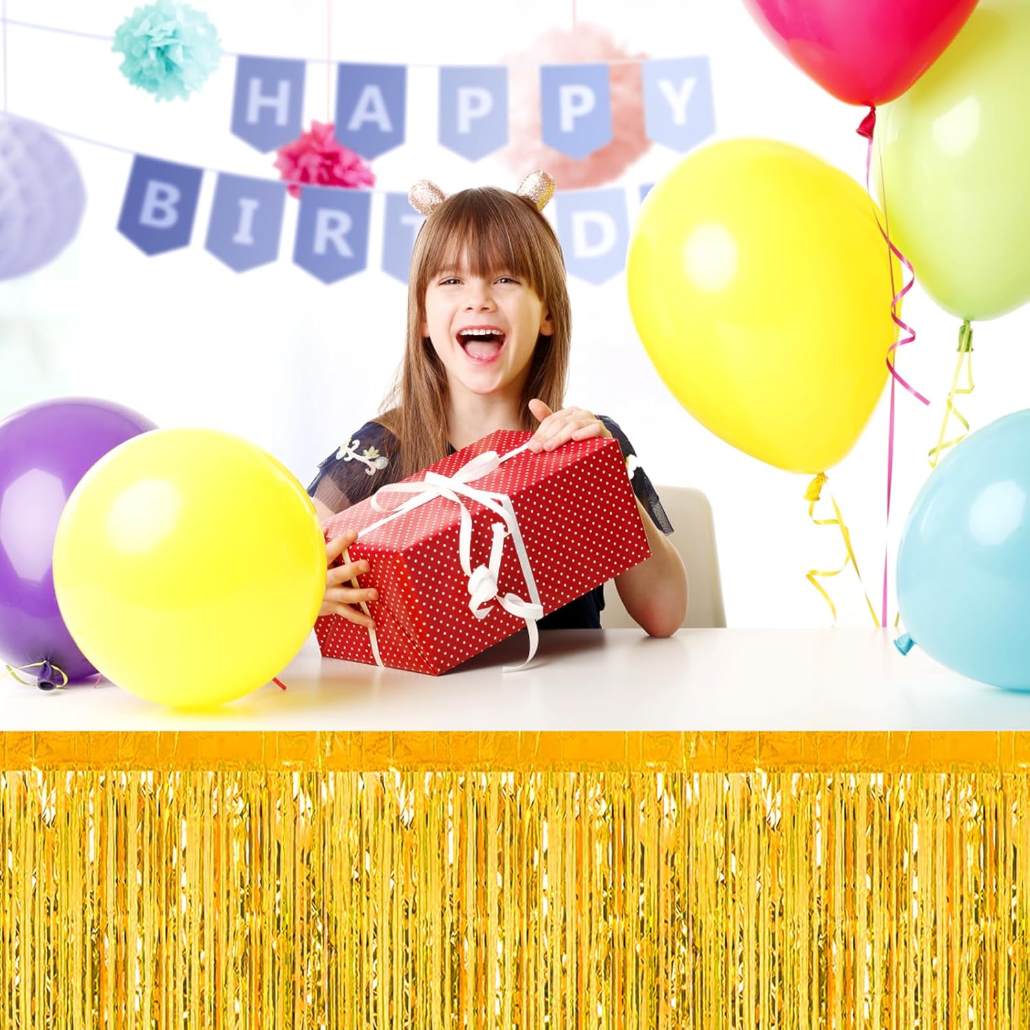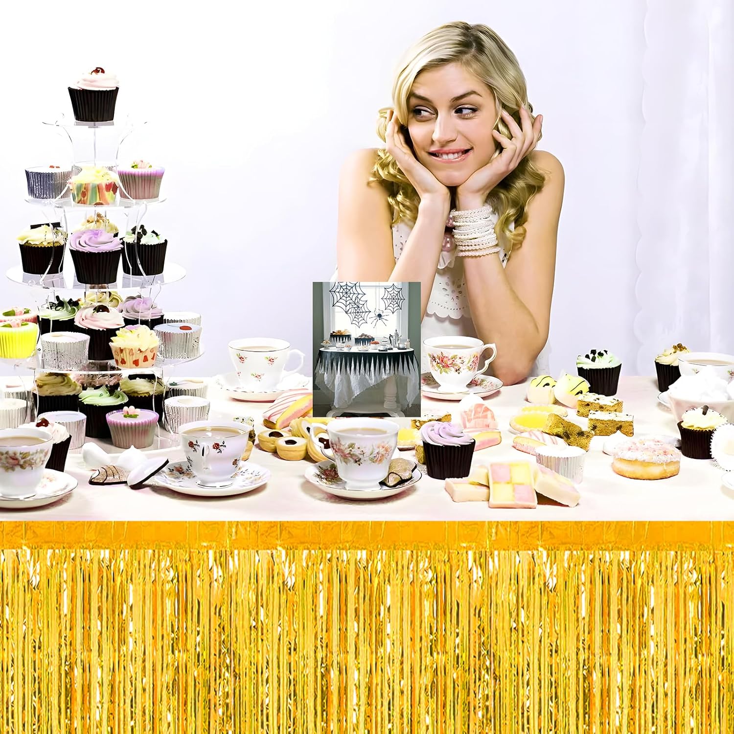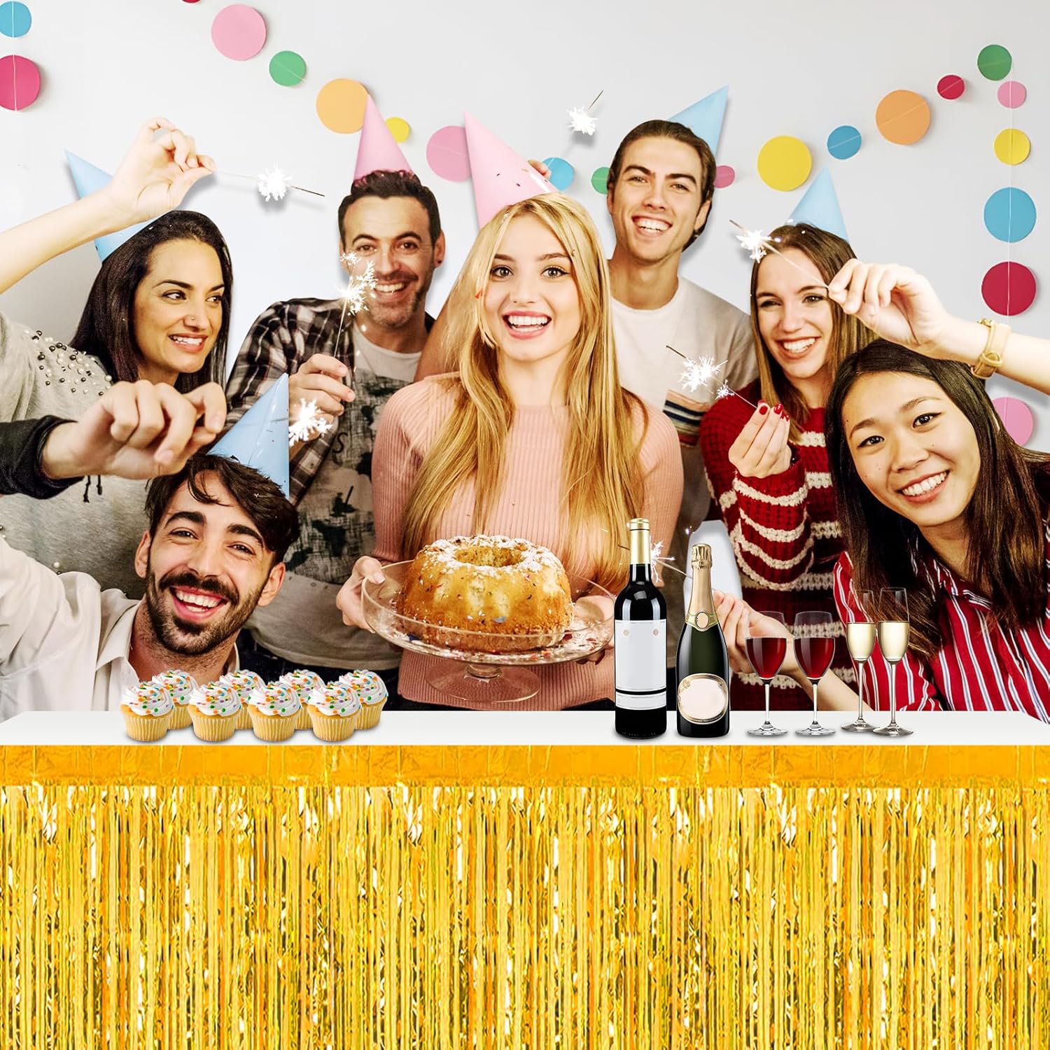 3 Pack 29x108 Inch Gold Foil Fringe Table Skirts Metallic Banner for Tinsel Streamer Garland Backdrop for Parade Floats Wedding Thanksgiving Birthday Christmas Halloween Party Decoration