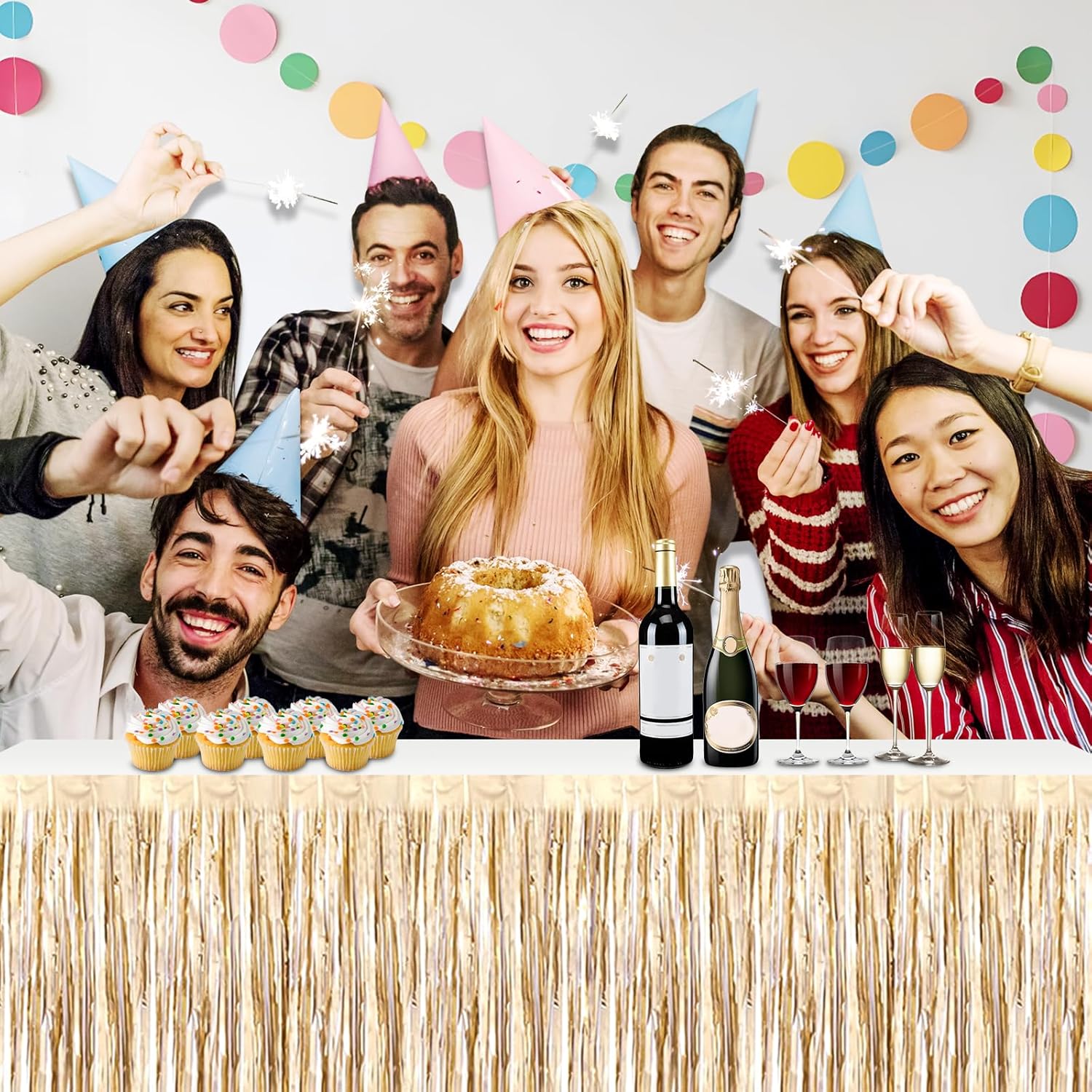 3 Pack 29x108 Inch Champagne Gold Foil Fringe Table Skirts Metallic Banner for Tinsel Streamer Garland Backdrop for Parade Floats Wedding Thanksgiving Birthday Christmas Halloween Party Decoration