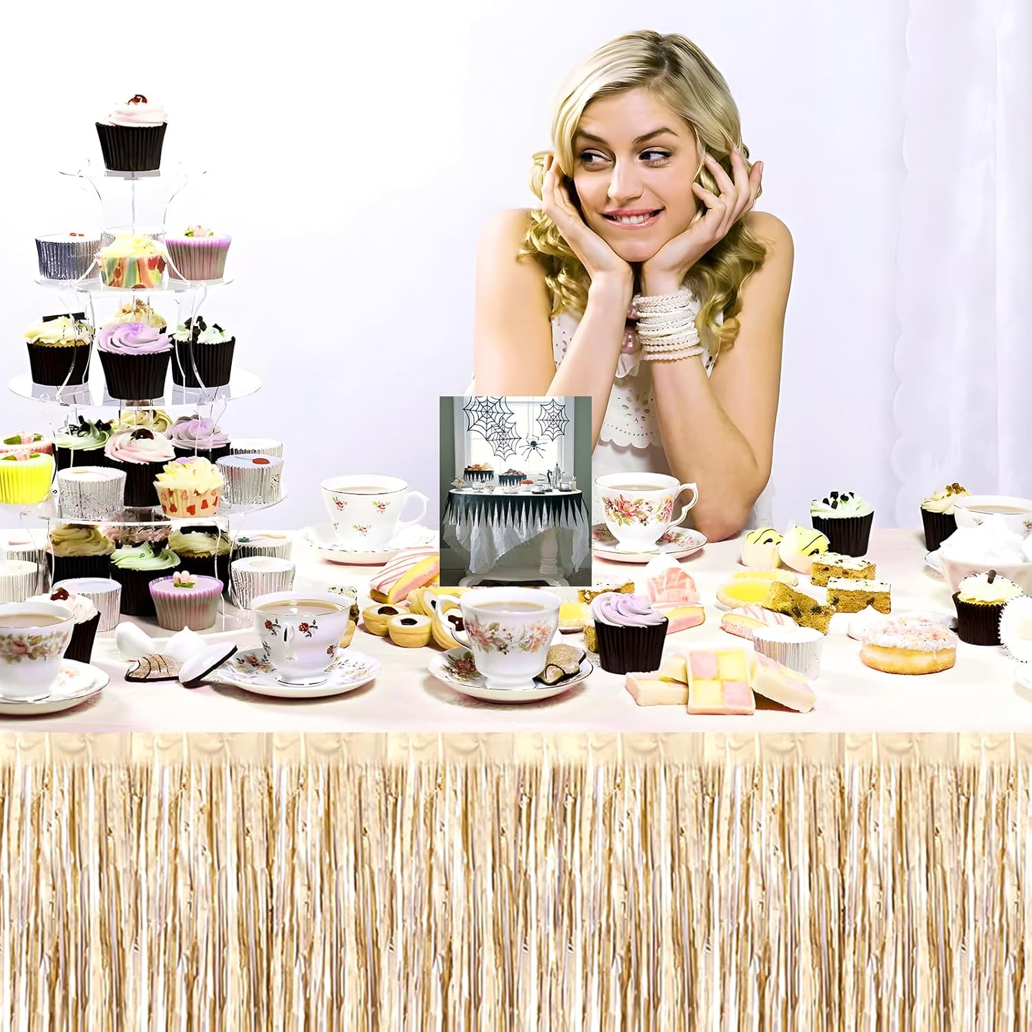 • Specifications and dimensions:3 Packs metallic foil tassel table skirt 29x108 inches, which is enough to decorate your party, provide you with excellent Convenient installation: the table skirt is equipped with self-adhesive tape. Just tear off the tape and paste it. The installation is convenient and quick. It can be pasted on the edge of your round table and square table. It can be easily cut into any siz.