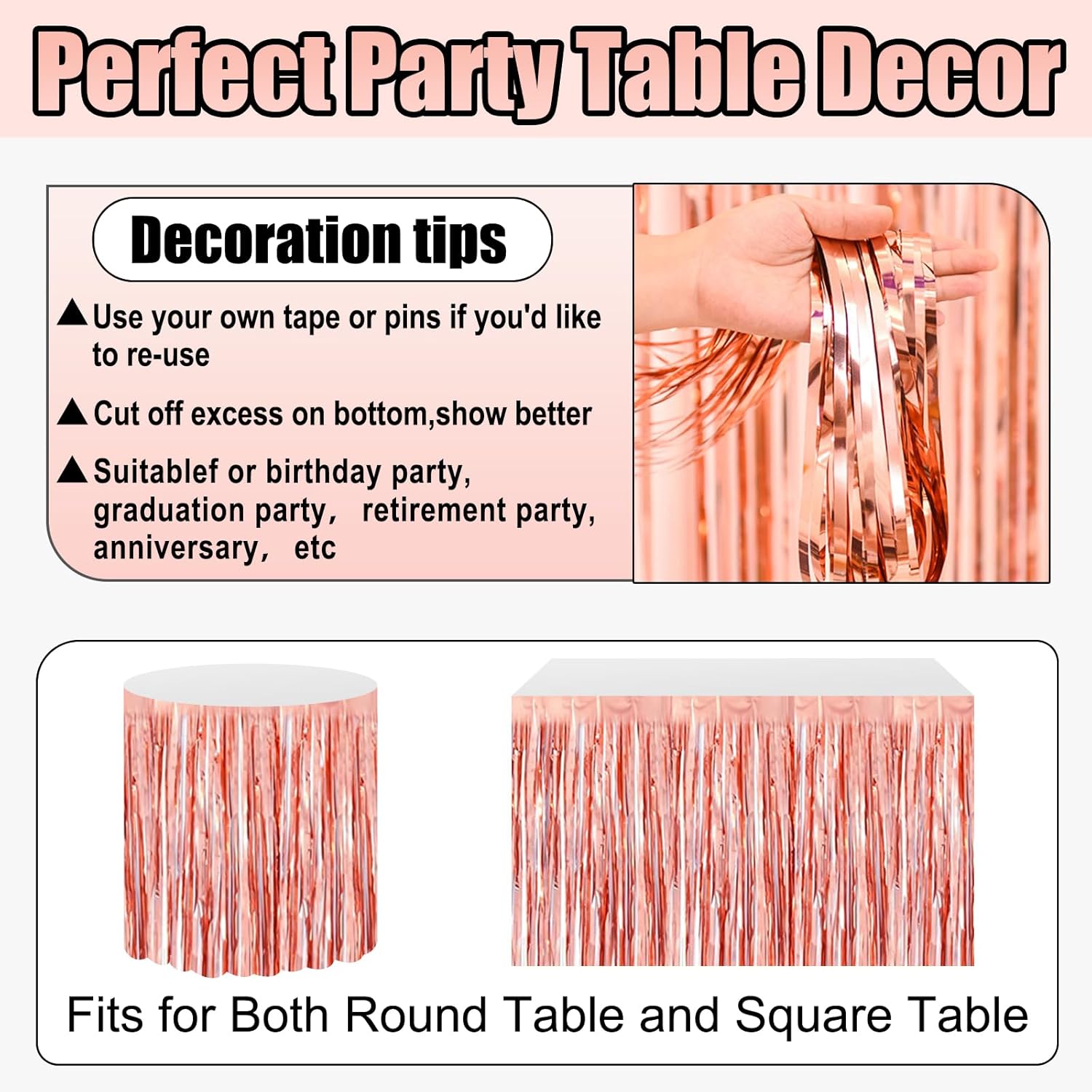 3 Pack 29x108 Inch Rose Gold Foil Fringe Table Skirts Metallic Banner for Tinsel Streamer Garland Backdrop for Parade Floats Wedding Thanksgiving Birthday Christmas Halloween Party Decoration