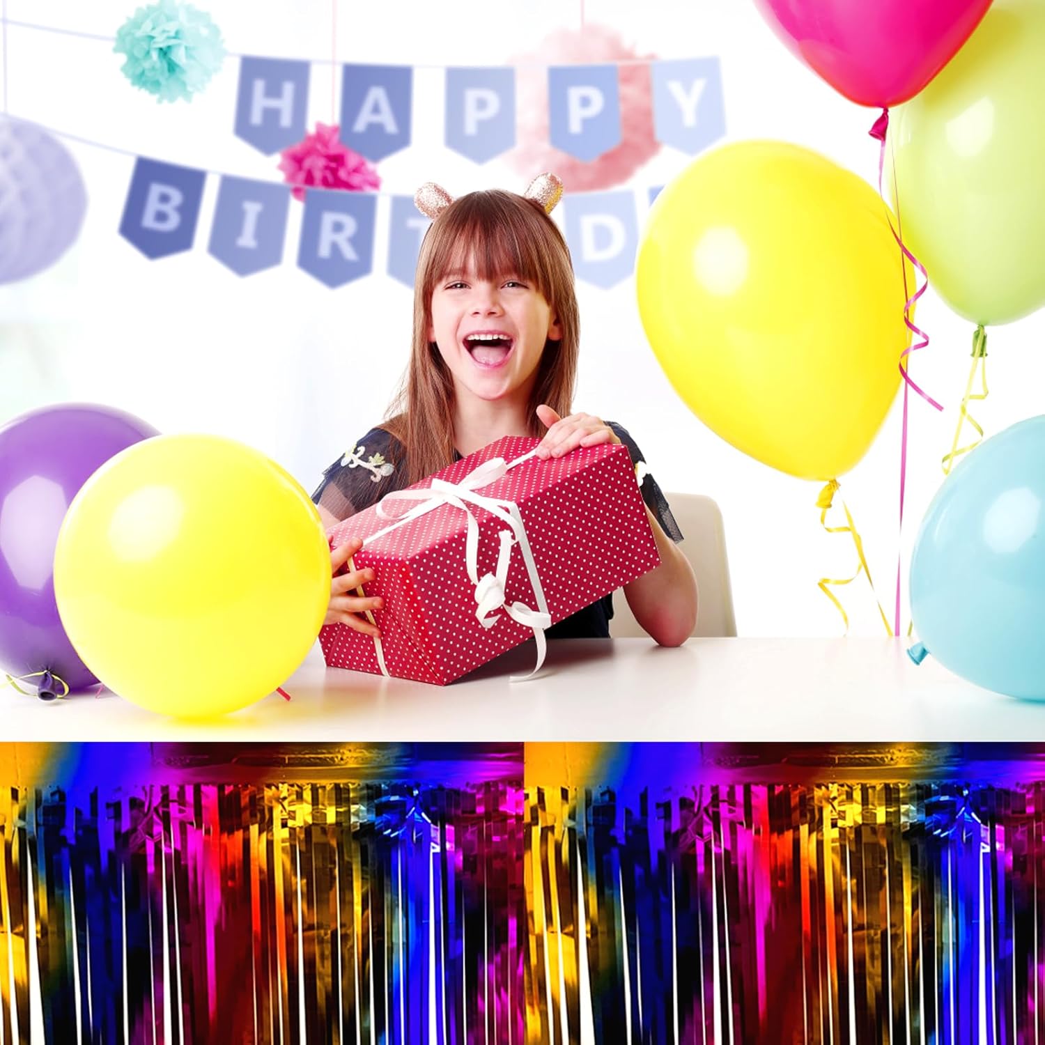 3 Pack 29x108 Inch Rainbow Foil Fringe Table Skirts Metallic Banner for Tinsel Streamer Garland Backdrop for Parade Floats Wedding Thanksgiving Birthday Christmas Halloween Party Decoration