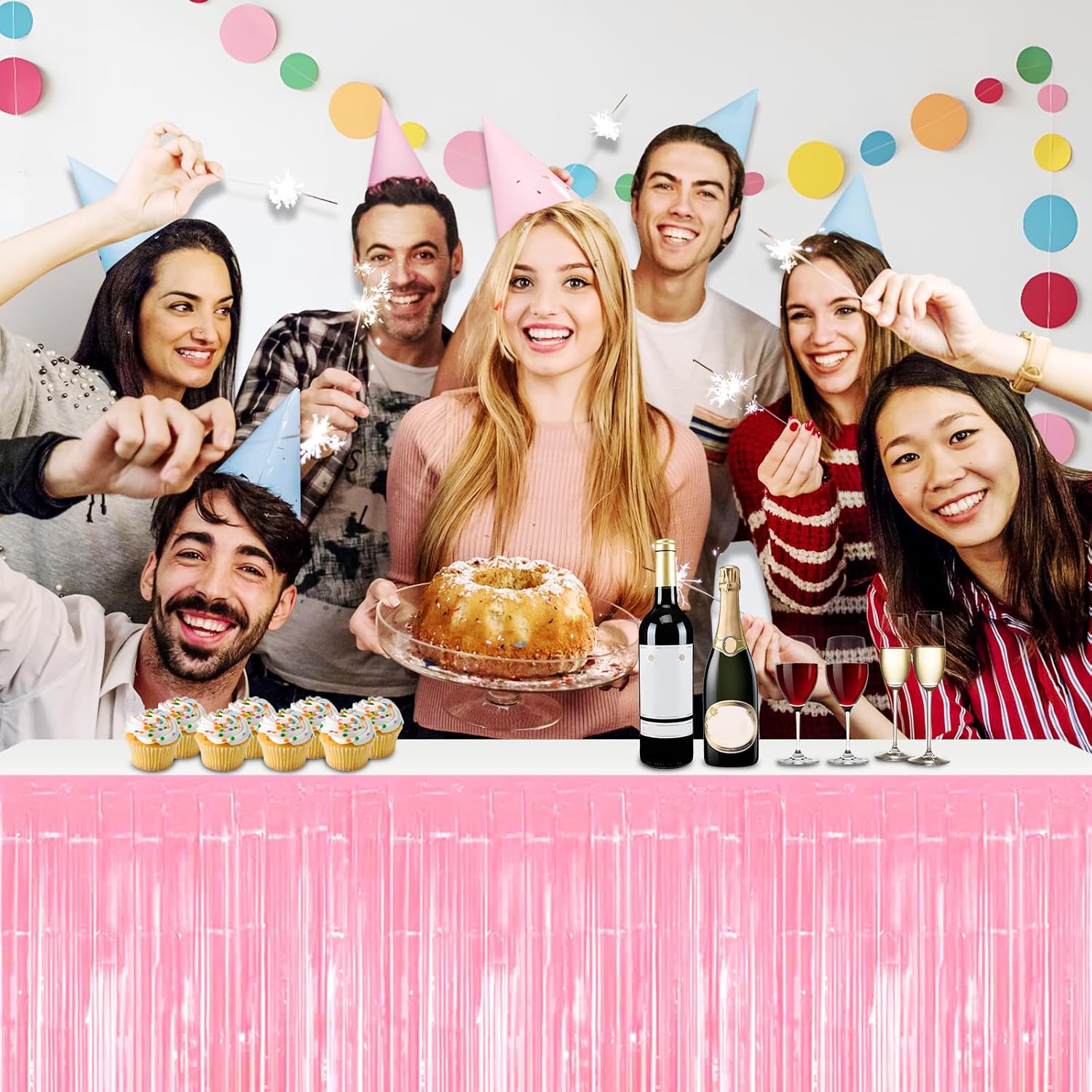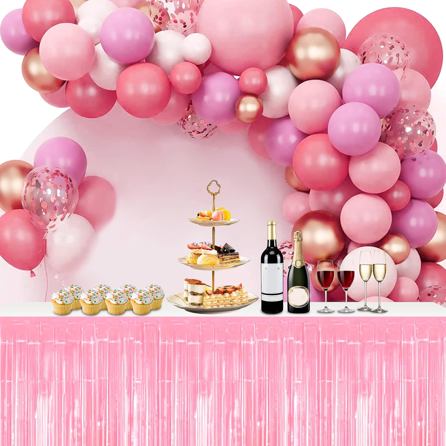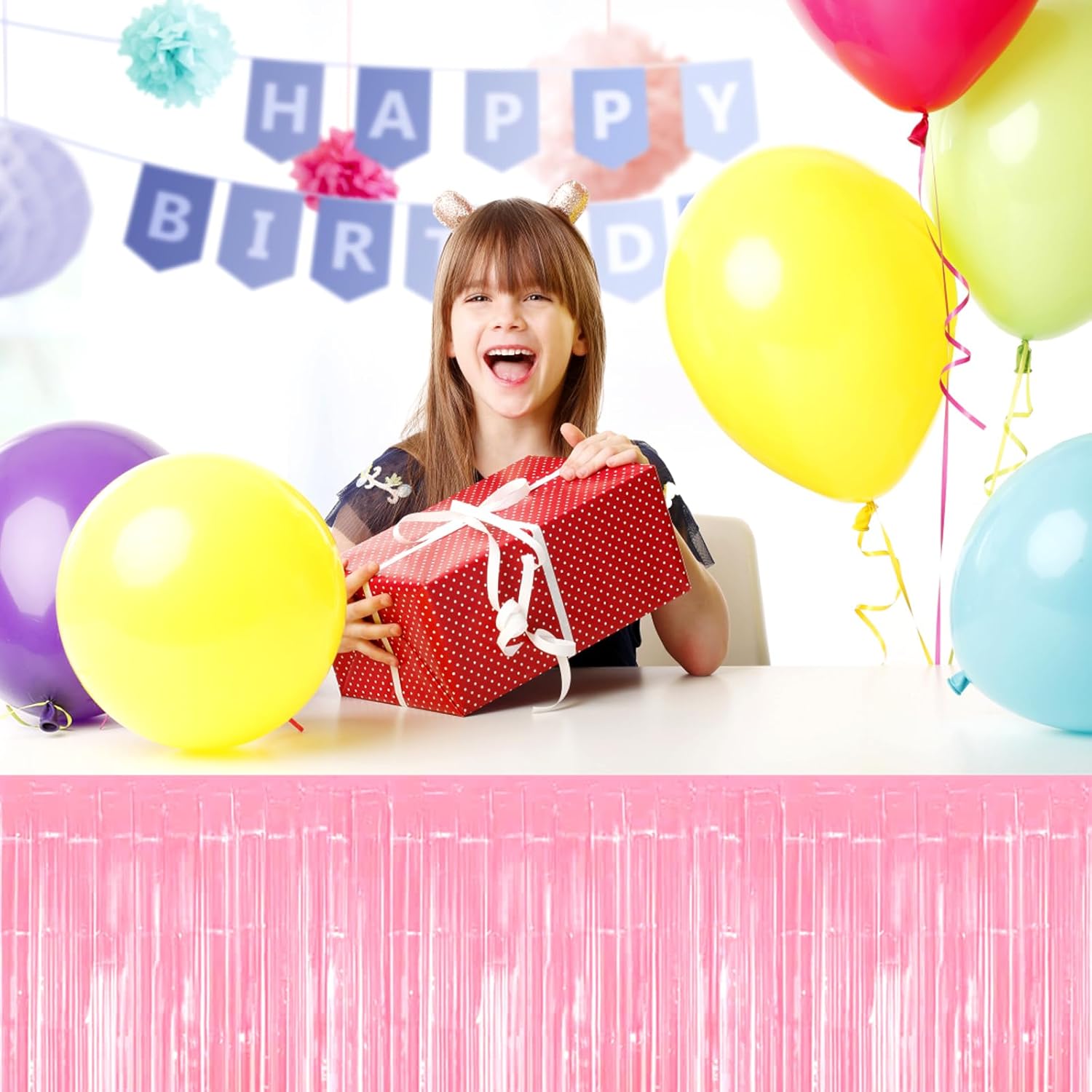 3 Pack 29x108 Inch Macaron Pink Foil Fringe Table Skirts Metallic Banner for Tinsel Streamer Garland Backdrop for Parade Floats Wedding Thanksgiving Birthday Christmas Halloween Party Decoration