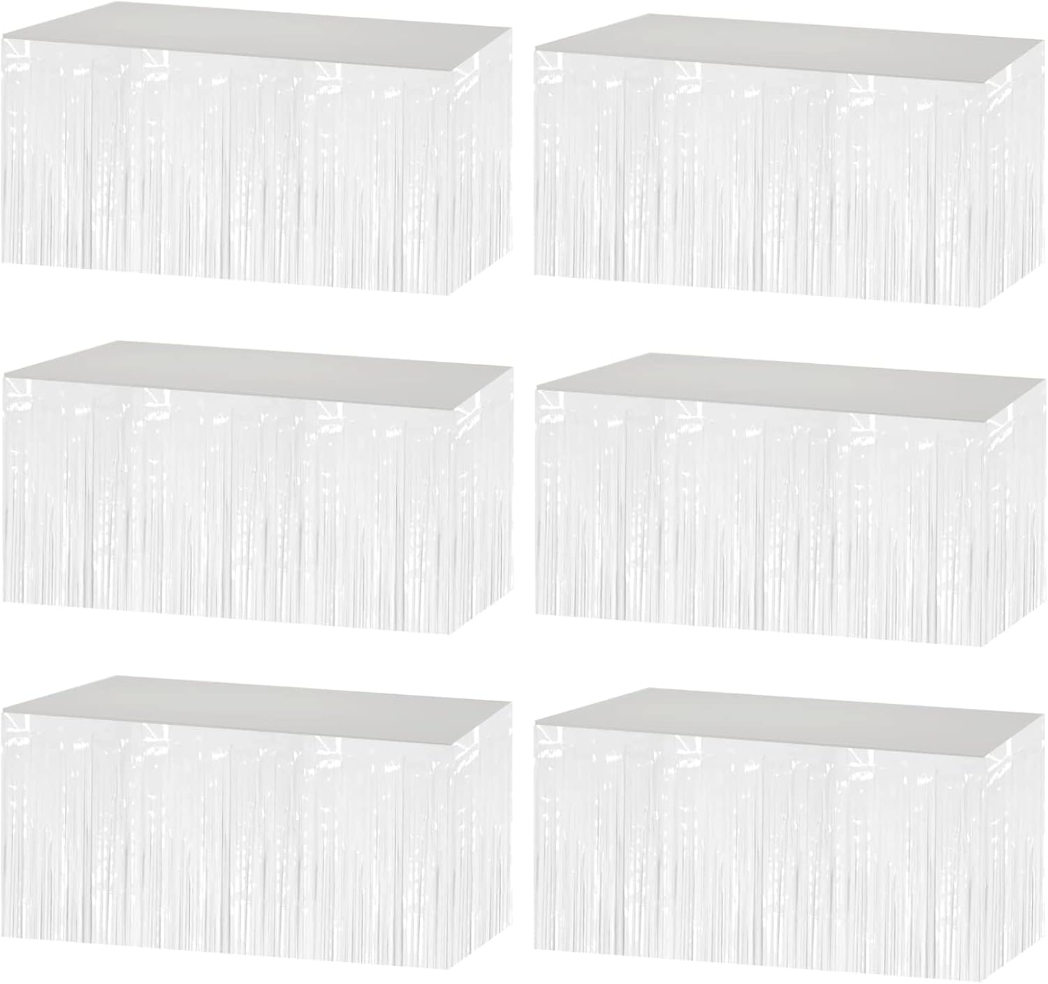 6 Pack 29x108 Inch Metallic Foil Fringe Tinsel Table Skirts Banner for Rectangle Tables Streamer Garland Curtains Backdrop for Wedding, Birthday, Parade Floats Party Decoration(White)
