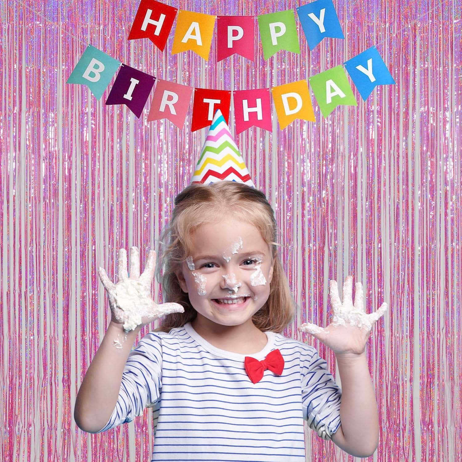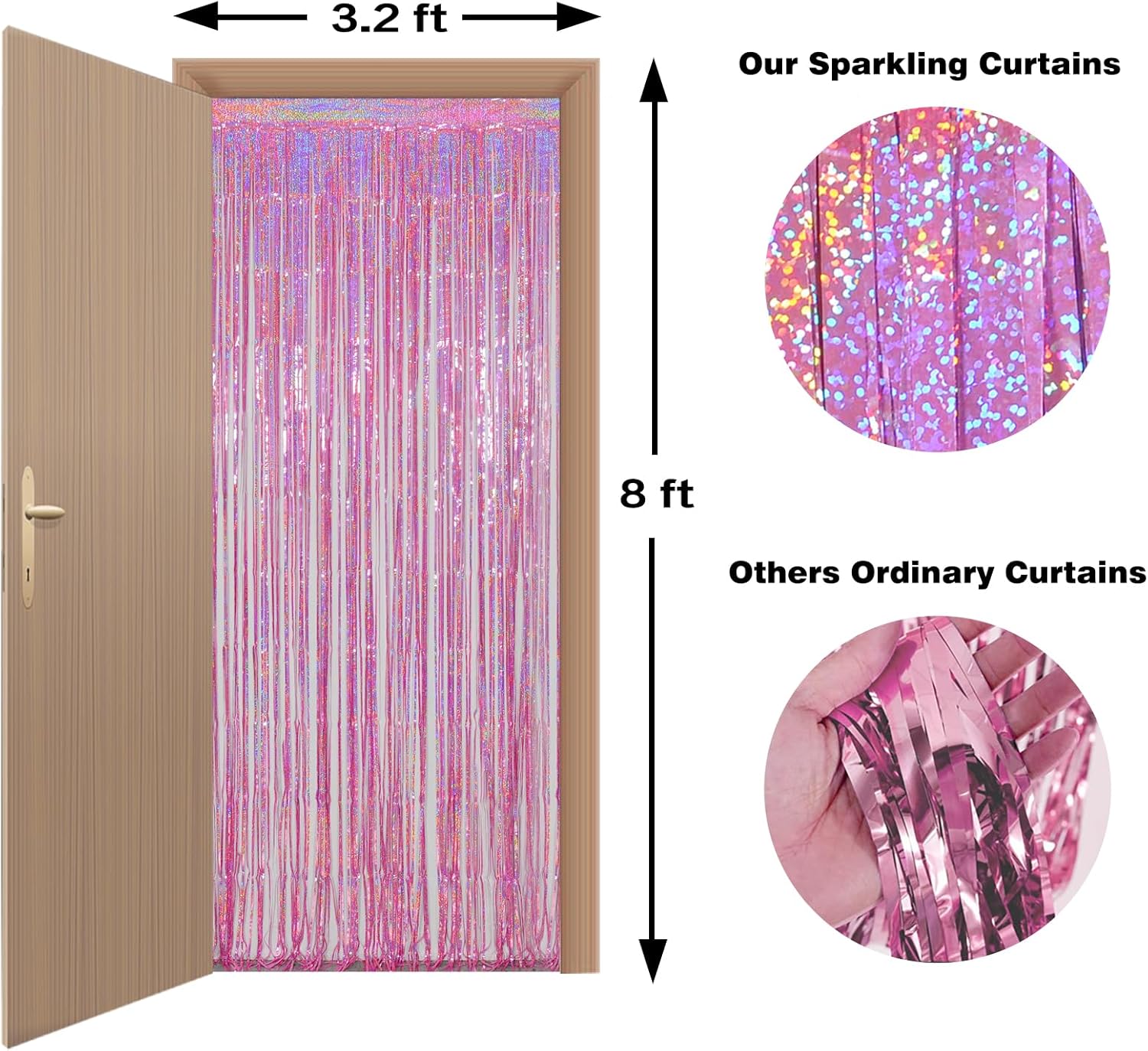 Melsan 3 Pack 3.2 x 8.2 ft Foil Fringe Curtains - Pink Tinsel Curtain Unicorn Birthday Hello Kitty Birthday Decorations Photo Backdrop for Party Decoration Engagement or Bachelorette Party Supplies
