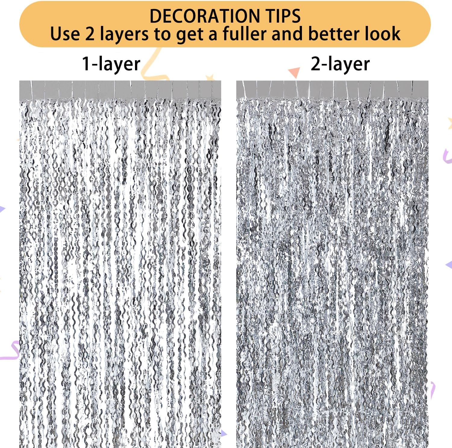 3 Pack Wave Silver Tinsel Curtain - 3.3x6.6 Feet Foil Streamers Birthday Party Decorations Wedding Background Decor Photo Booth Props