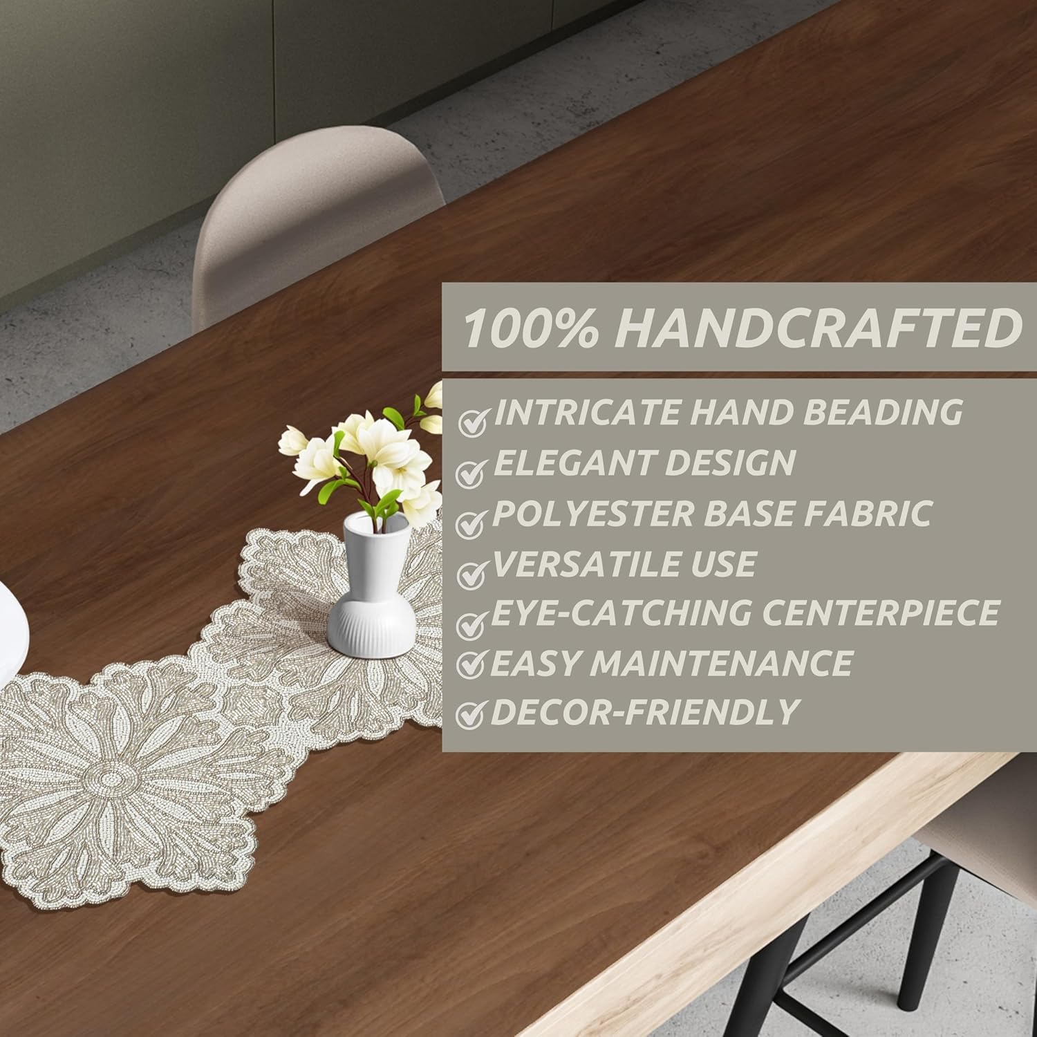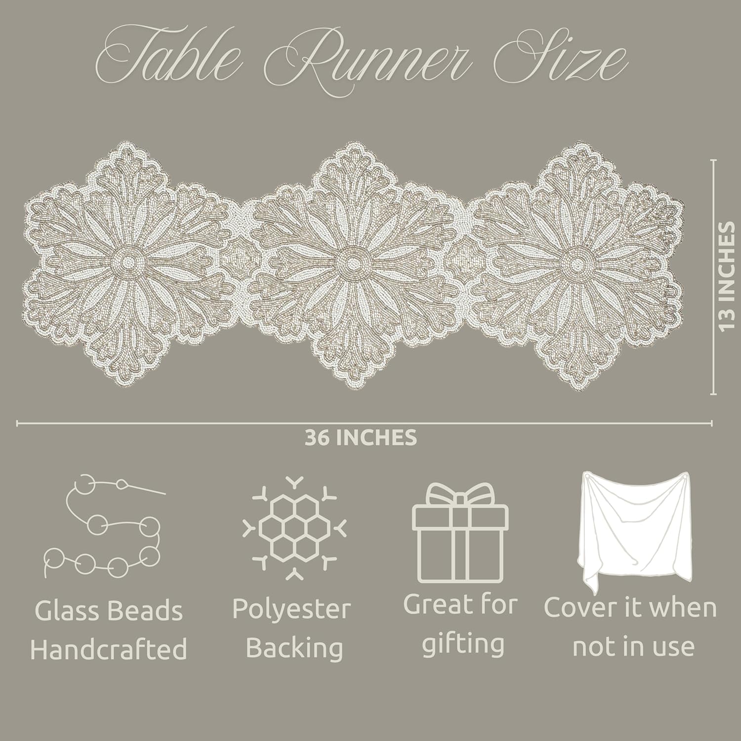 • ✅ MEASUREMENTS & COLORS: This 13x36-inch beaded table runner in elegant ivory adds a sophisticated touch to your décor.