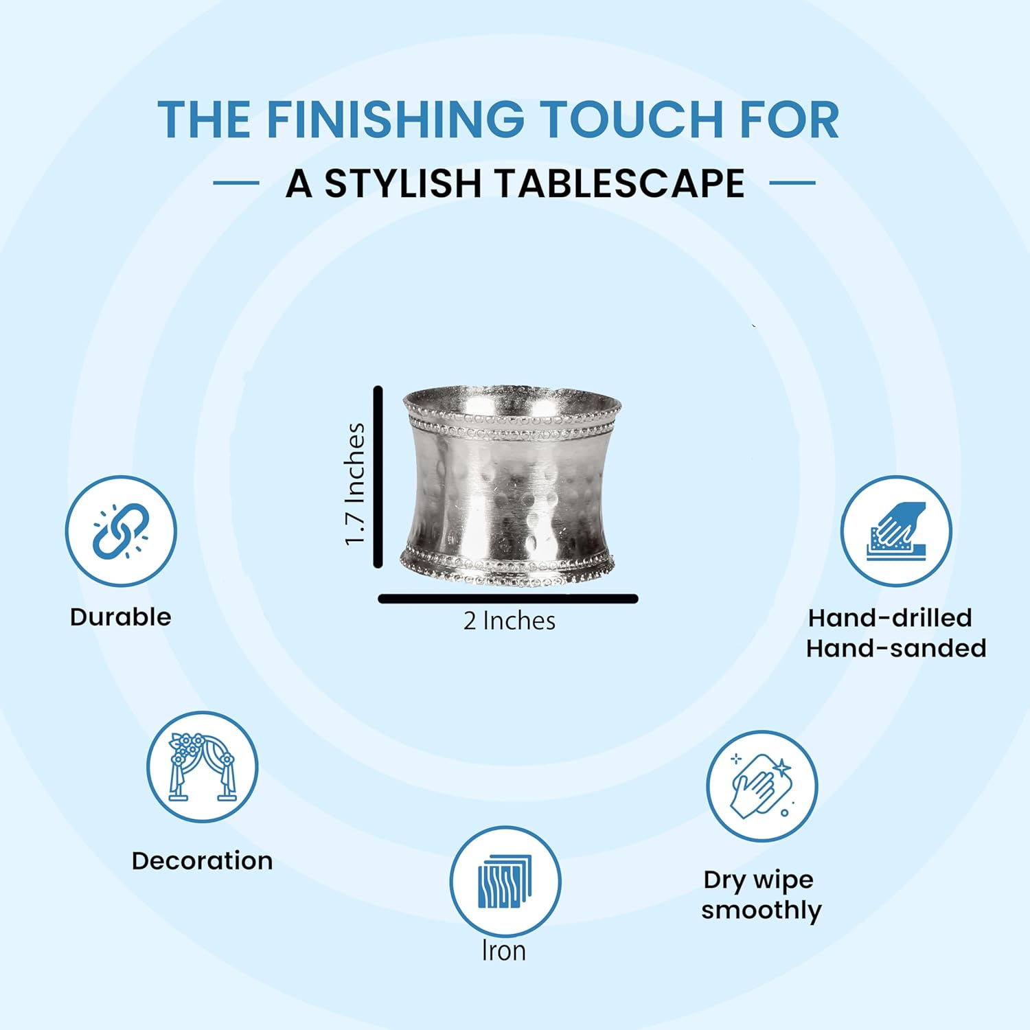 • ✅Compact Size: Perfectly designed napkin ring set of 12, each measures 2 x 2 x 1.5 Inches.