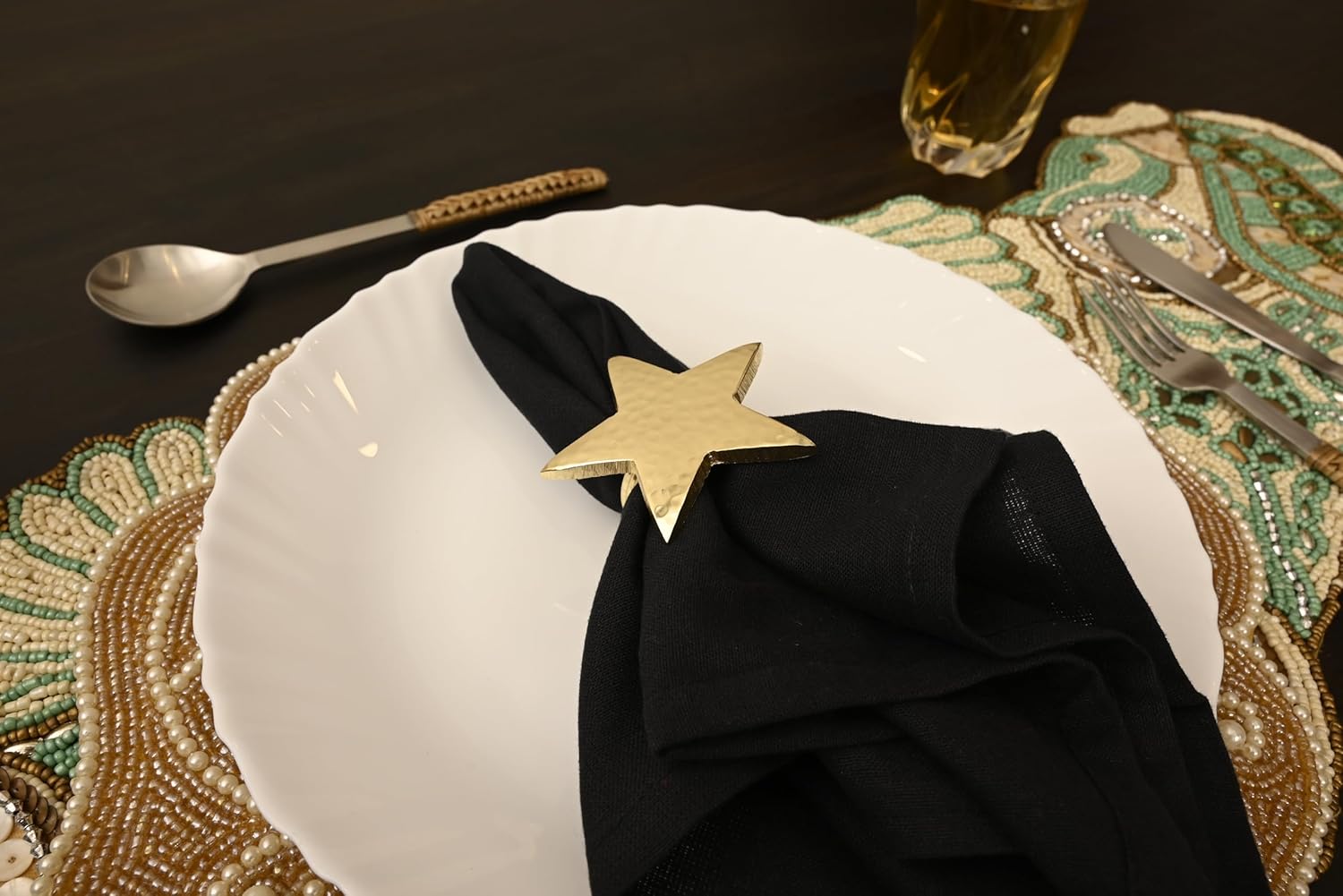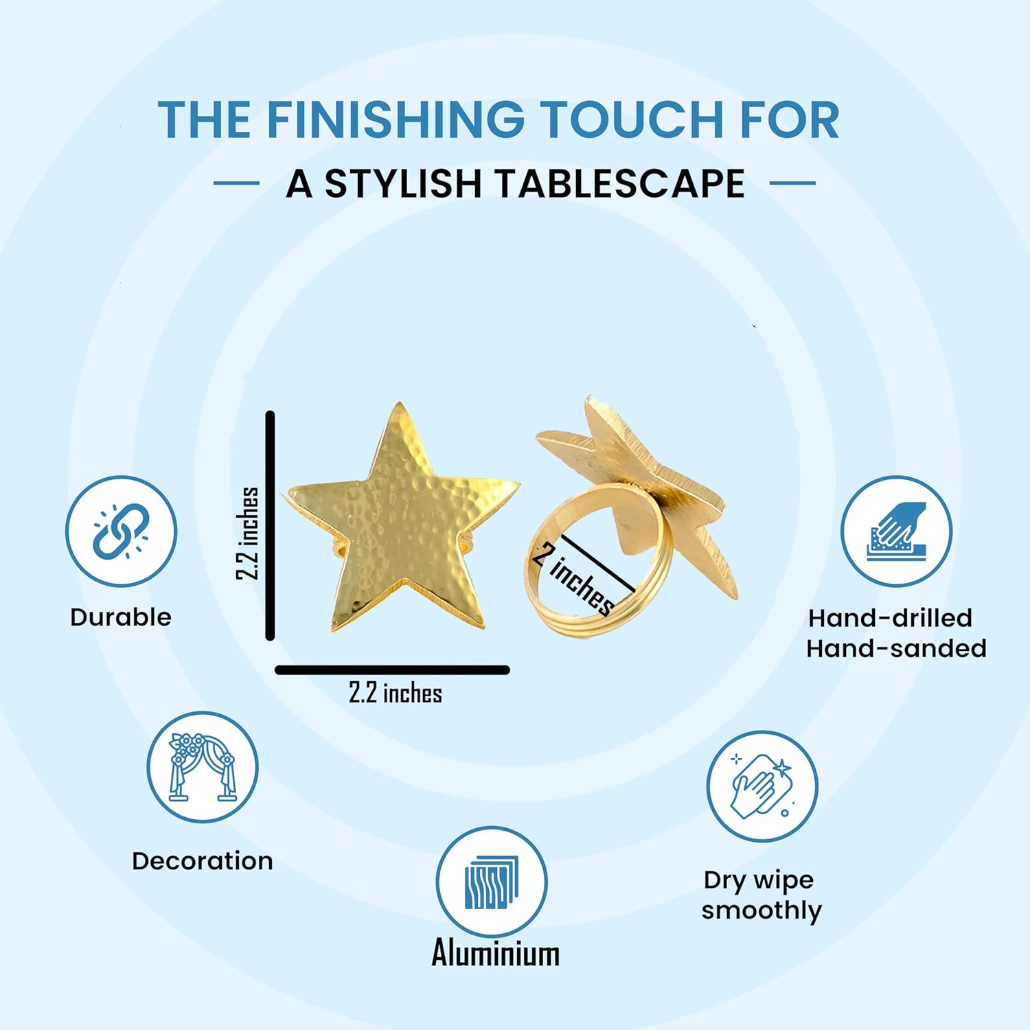 12 Pcs Lightweight Metal Napkin Rings - Gold Star Metal Holders for Elegant Table Decor, Parties, Weddings, Holidays, Everyday Dining - Metallic Adornment for Table Settings - CLEENTABLE