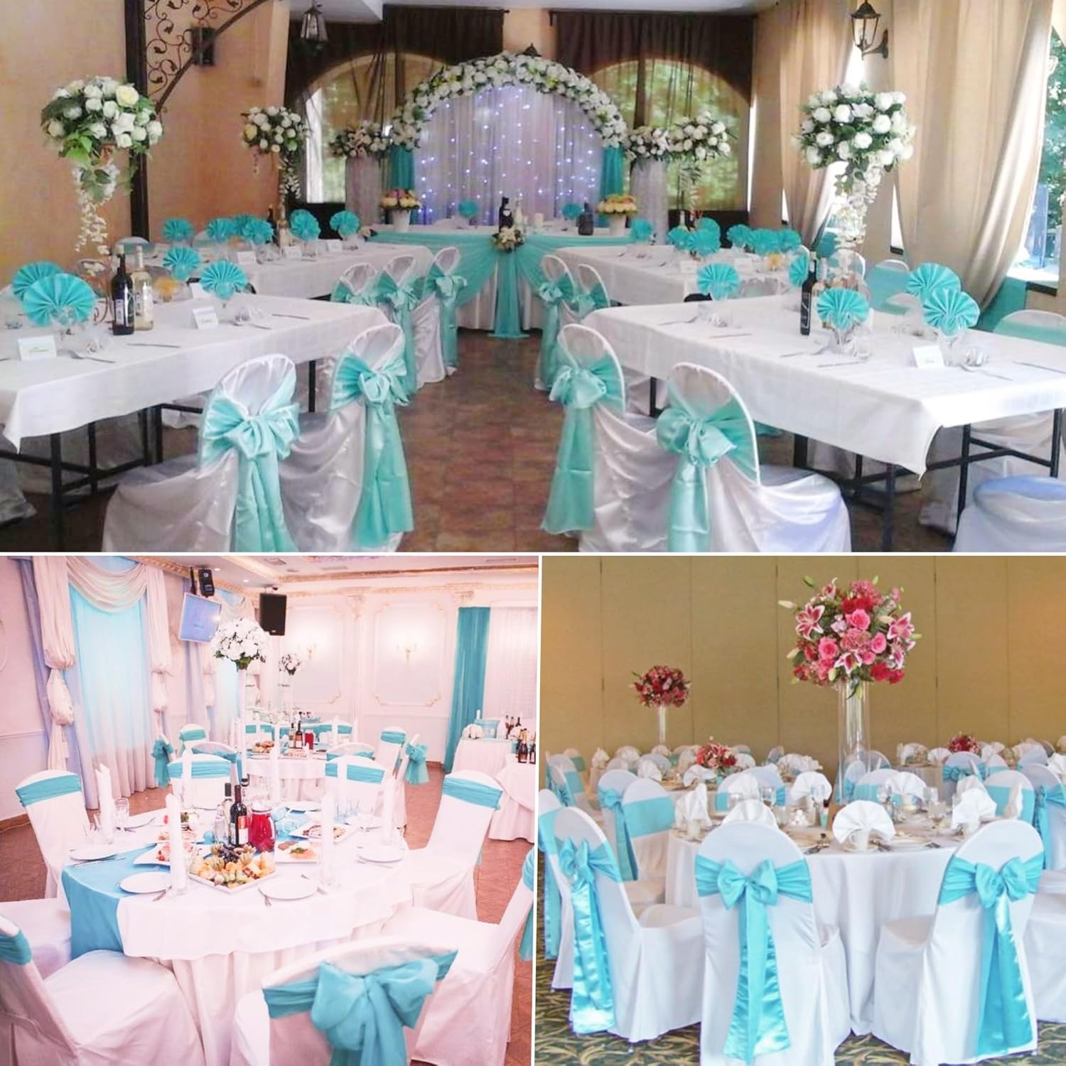 100 PCS Satin Chair Sashes Decorative Bow Chair Sashes Ties Back Ribbon Bow Chairs Cover Band for Wedding Birthday Party Ceremony Reception Event Banquet Hotel Home Kitchen Fall Decor(7 x108inch,Aqua)