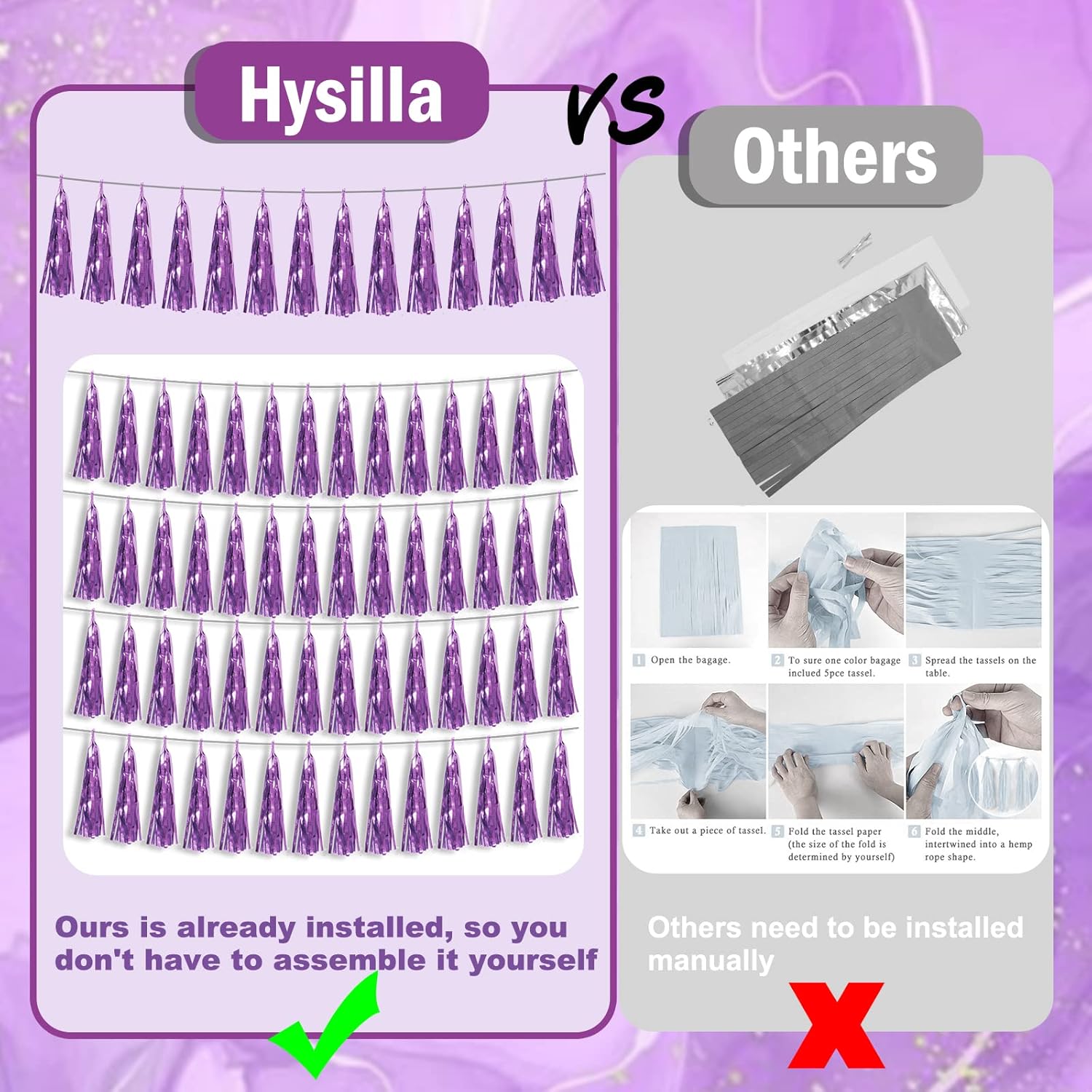 • 【Light Purple Party Supplies Set】: The total length of the light purple birthday tassels banner is 59 feet, divided into 6 strips, each 9.8 feet long. Each banner contains 15 tassels, and each tassel measures 14 inches, for birthday decorations many occasions, and so on