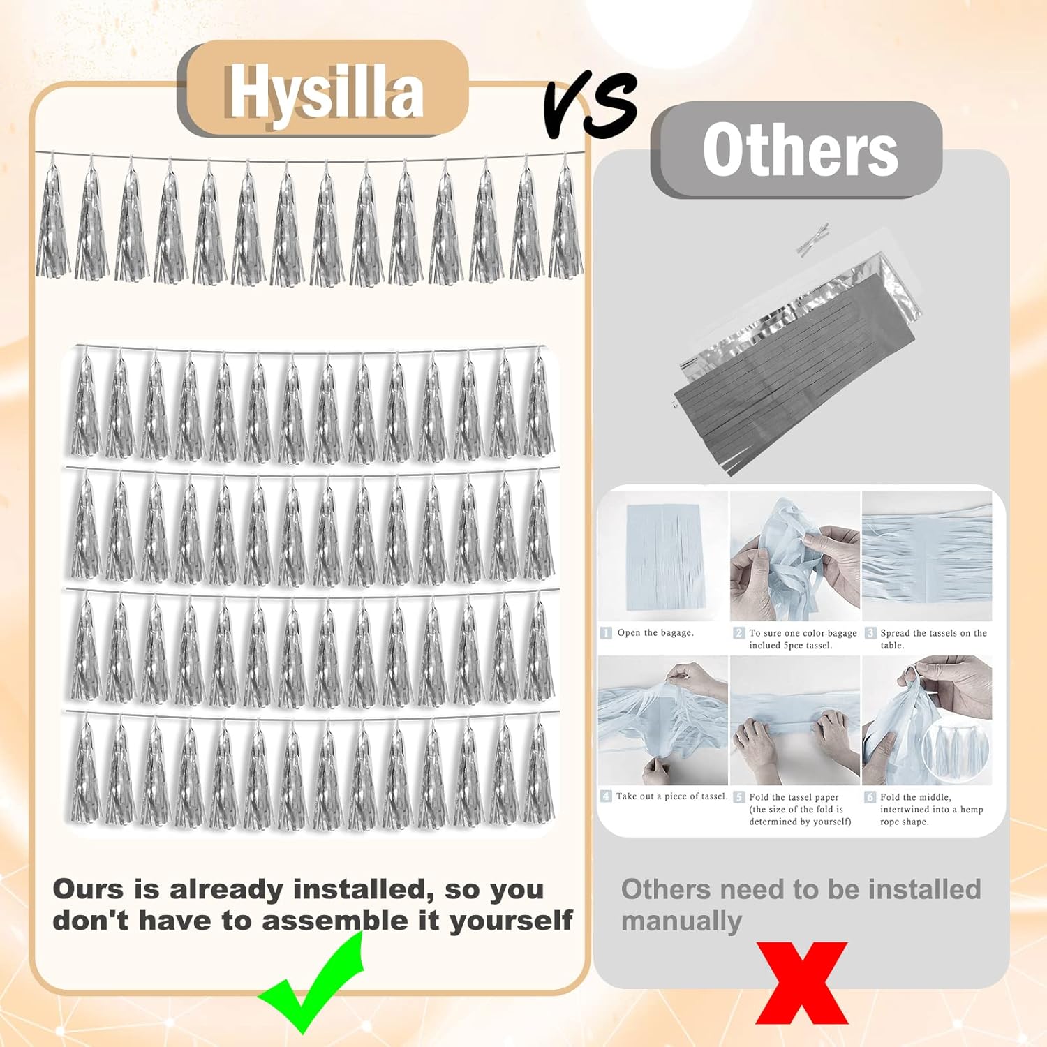 • 【Silver Party Supplies Set】: The total length of the silver birthday tassels banner is 59 feet, divided into 6 strips, each 9.8 feet long. Each banner contains 15 tassels, and each tassel measures 14 inches, for birthday decorations many occasions, and so on