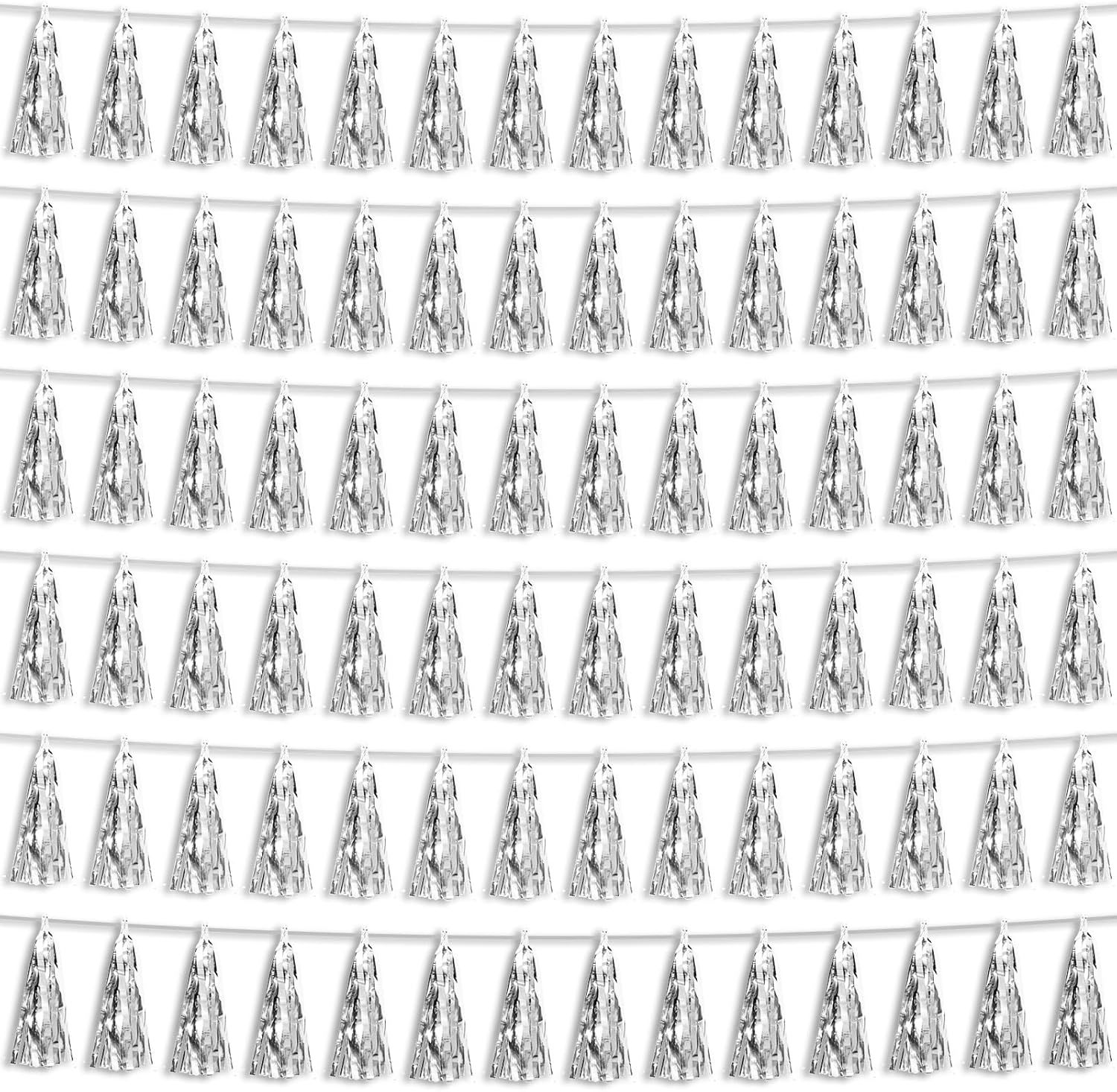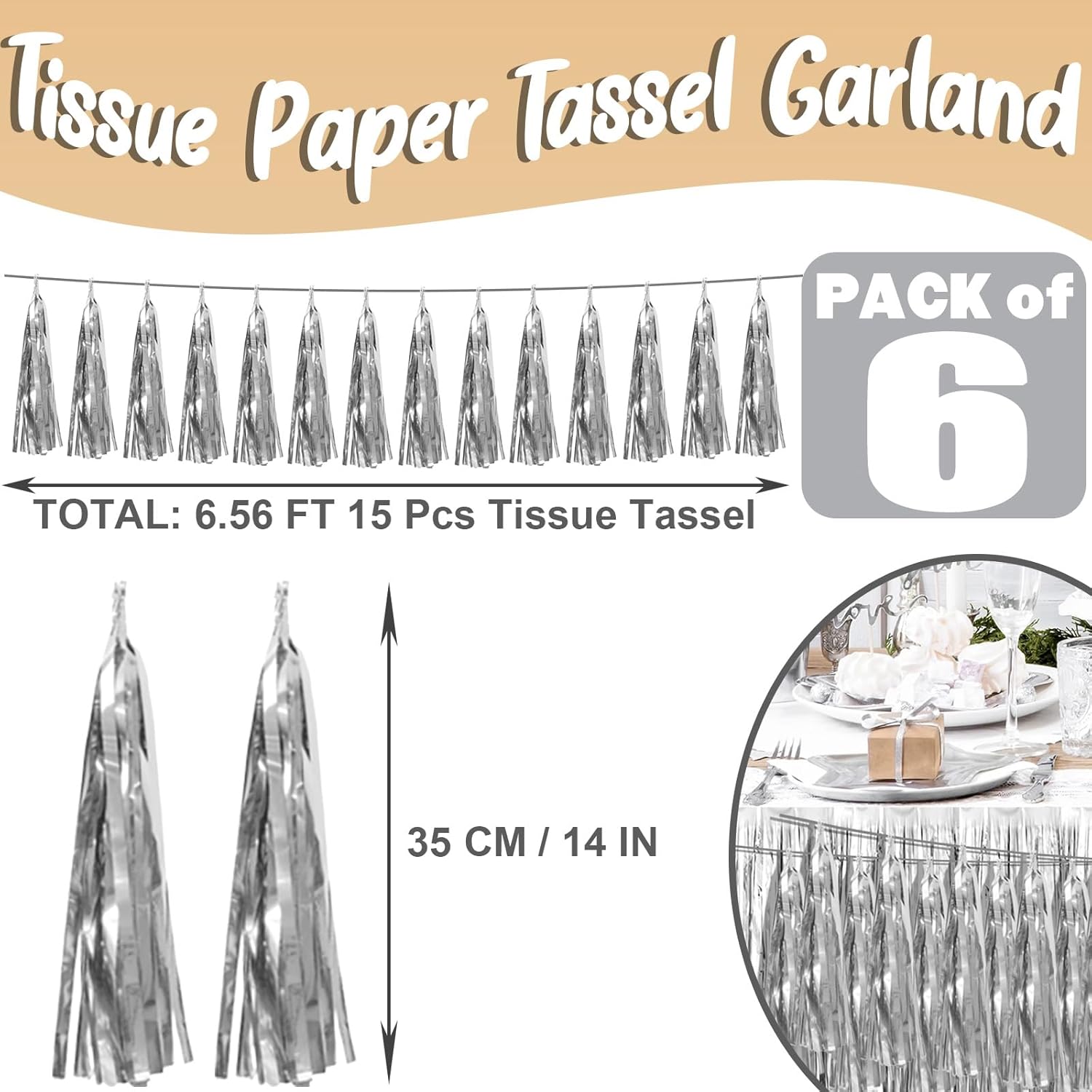 6P Silver Foil Fringe Metallic Tassel Streamers Banner Tassel Garland for Parade Floats, Bachelorette, Wedding, Birthday, Graduation, Christmas, Bridal/Baby Shower Party Decorations