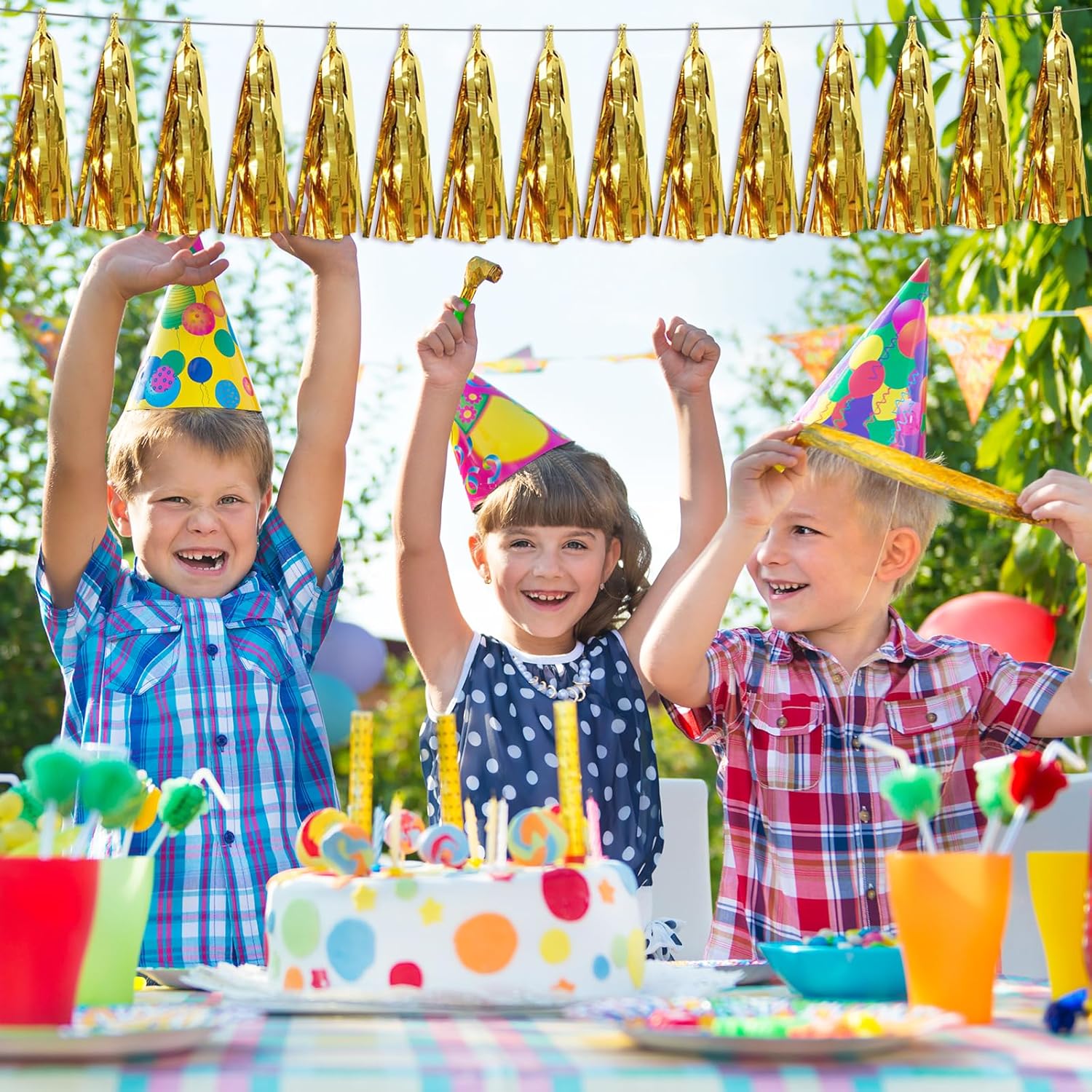 • 【Reusable Paper Material】: high-quality metallic foil tassel garlands, with the virtue of nice craftsmanship and lightweight, they are reusable and safe, and not easy to fade; They come with white ribbon for hanging, and garland tassels hang perpendicular to the string, and are adjustable to provide you with the option of spreading the tassels out or piecing them closer together.