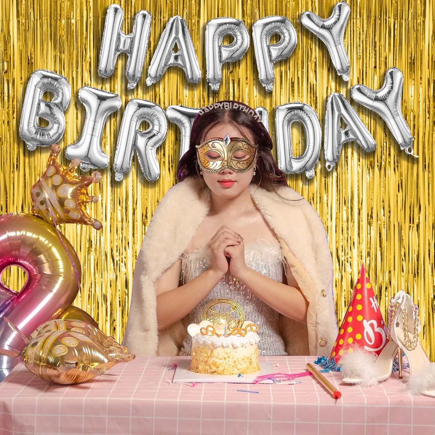 2 Pack Gold Fringe Curtain Backdrop Tinsel Streamers Birthday Party Decorations Christmas Photo Booth Backdrop New Year Halloween Graduation Baby Shower Theme Party Decorations