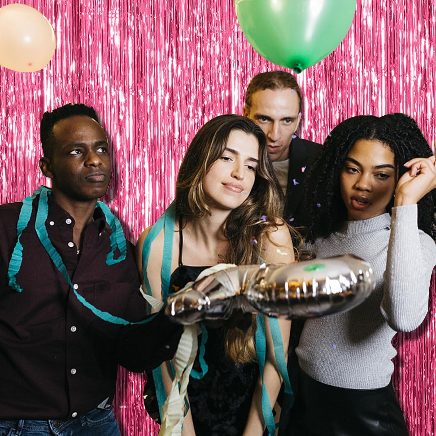 2 Pack Pink Backdrop Party Decorations Tinsel Curtain Party Backdrop Foil Fringe Birthday Decorations Photo Booth Streamer Backdrop Pink Theme Bachelorette Graduation Decor