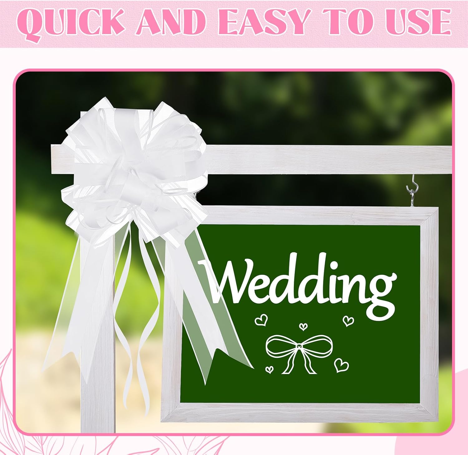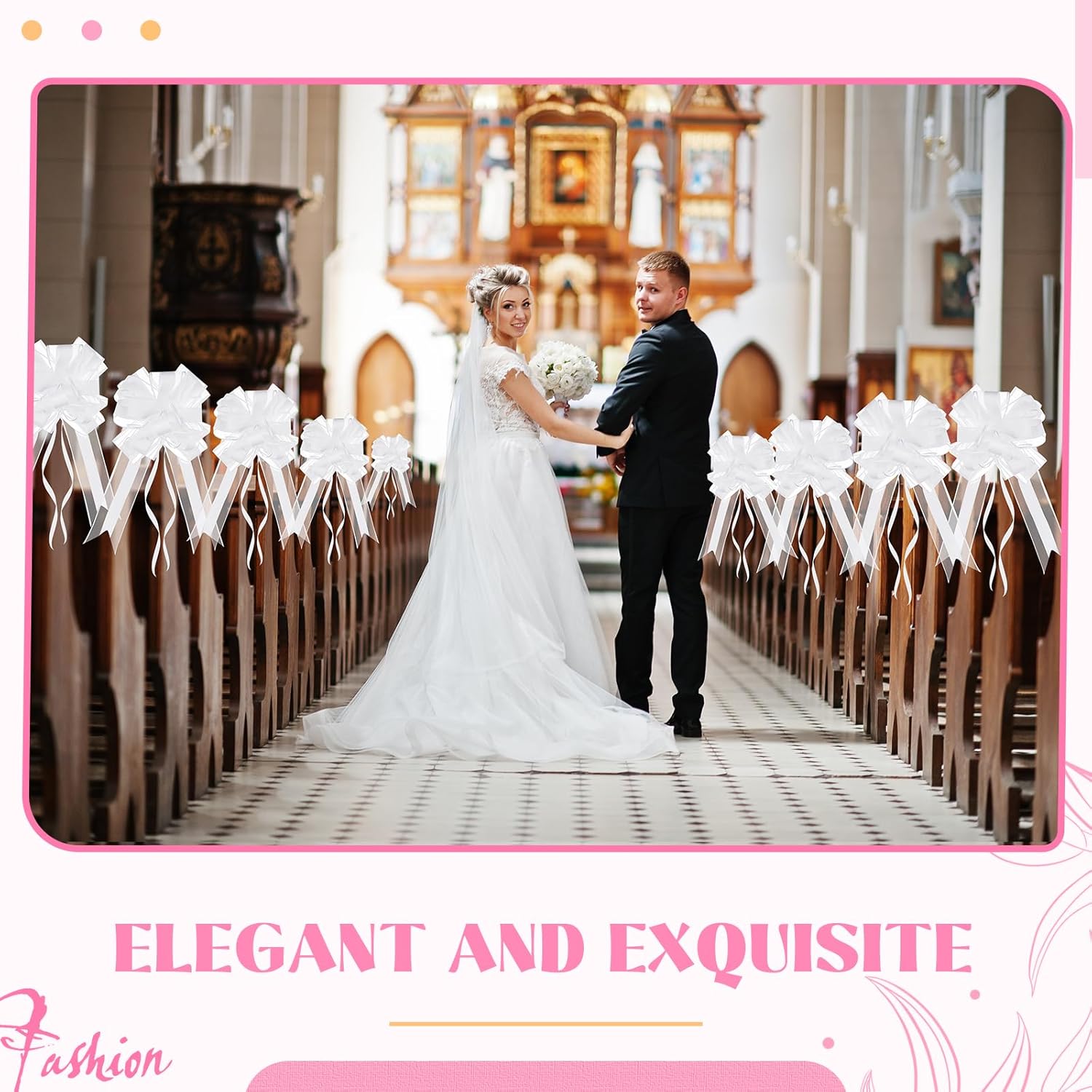 Riceshoot 24 Pcs Wedding Pew Bows with Yarn, Wedding Aisle Decorations for Church Chair Bench, Big Pull Bows for Gift Wrapping Bridal Shower Reception Birthday Anniversary Car Decor