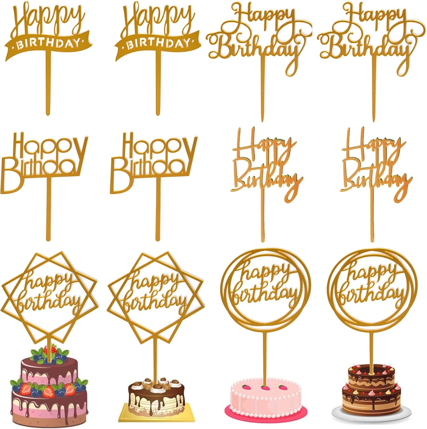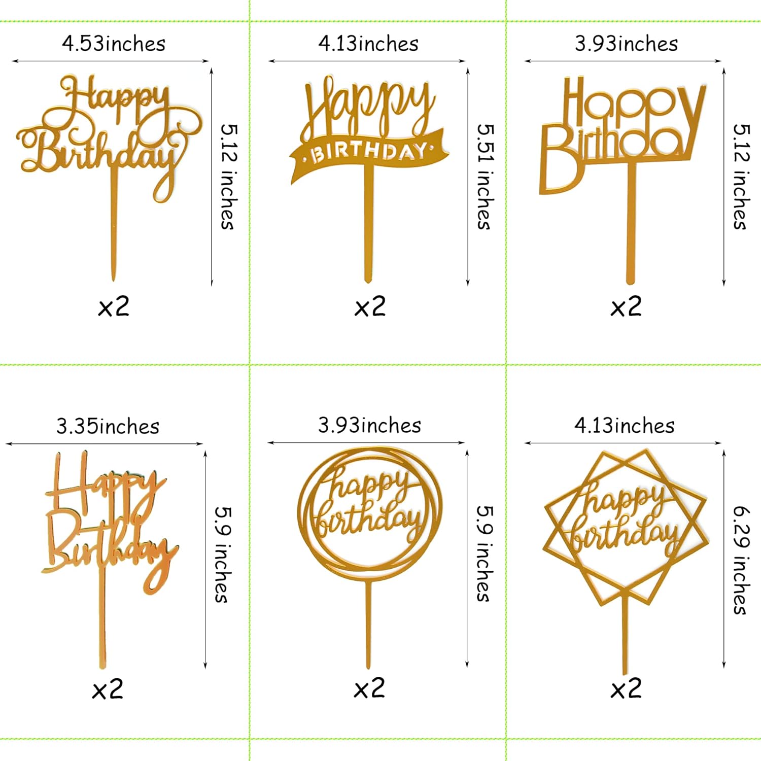 • Bulk Supply: Totally 12 pack gold acrylic birthday cake topper, large amount for family use.