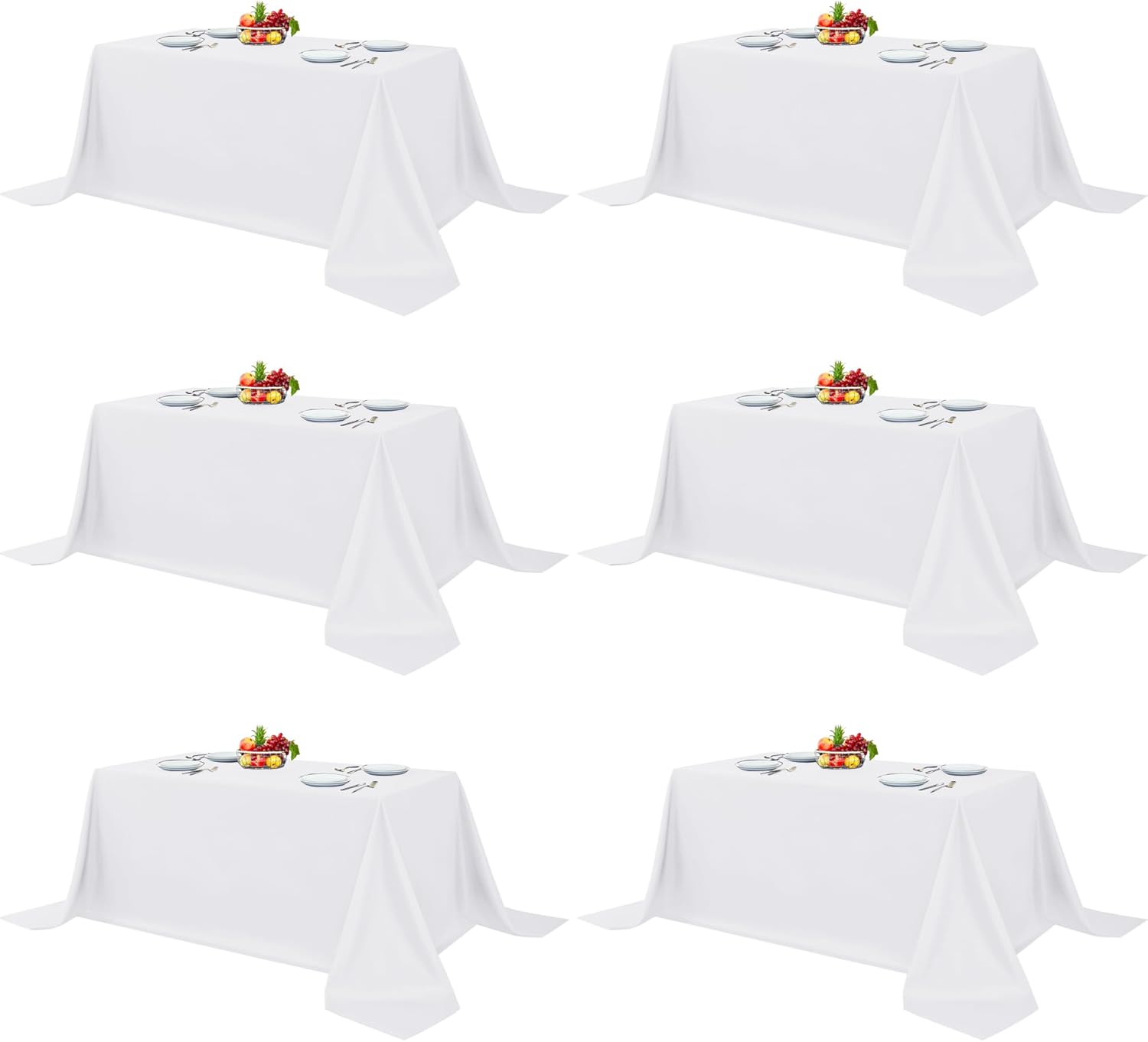 Fitable White Table Clothes for Rectangle Tables, 6 Pack - 90 x 156 Inch - Reusable and Elegant Tablecloths, Polyester Fabric Table Covers for Wedding, Party, Banquet, Formal Events