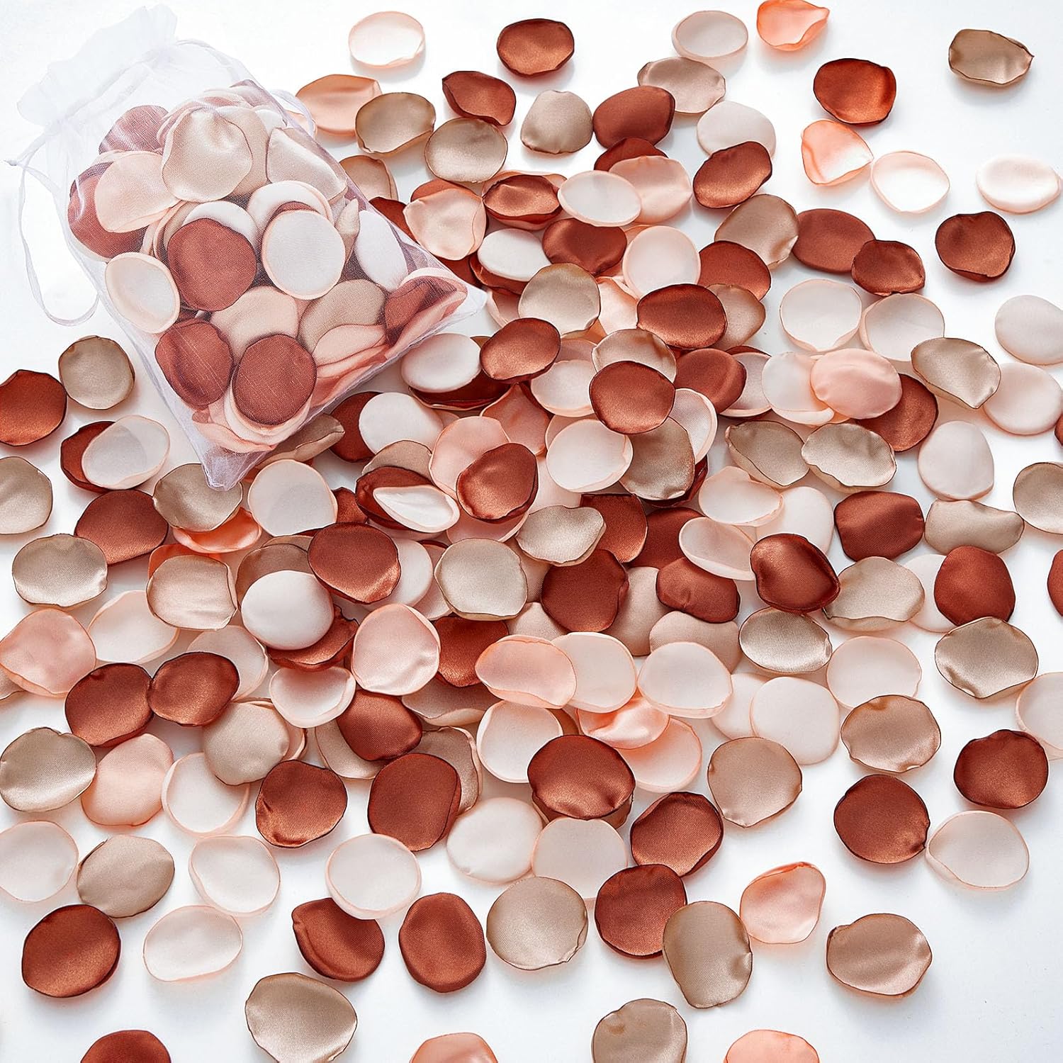 Serwalin 500Pcs Silk Rose Petals Artificial Flower Petals for Weddings Fake Rose Brown Petals Proposal for Wedding Aisle Runner Bridal Shower (4 Color Mixes)