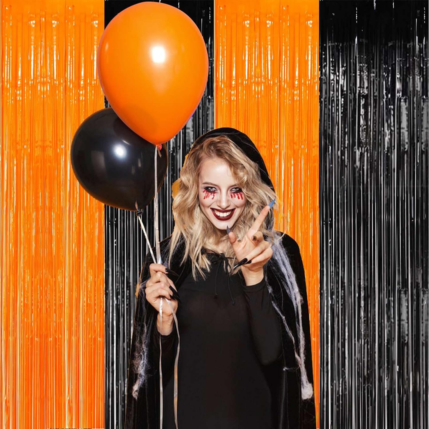 • CLASSIC HALLOWEEN DECOR: The party backdrop curtains features two iconic colors: orange and black. these colors are synonymous with Halloween and are essential for creating a spooky atmosphere at your Halloween. get ready to transform your space into a frightfully fun Halloween scene with these classic orange and black foil fringe curtains.