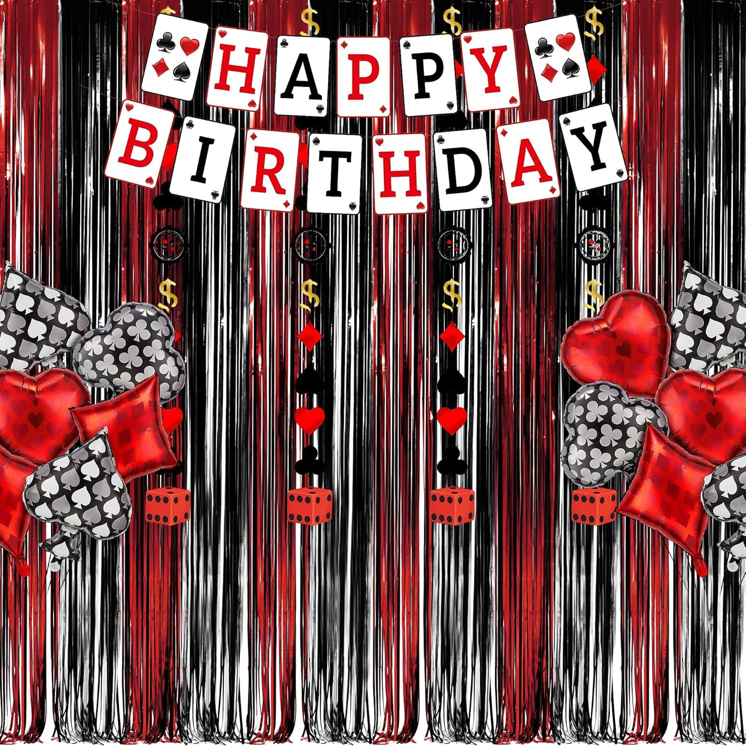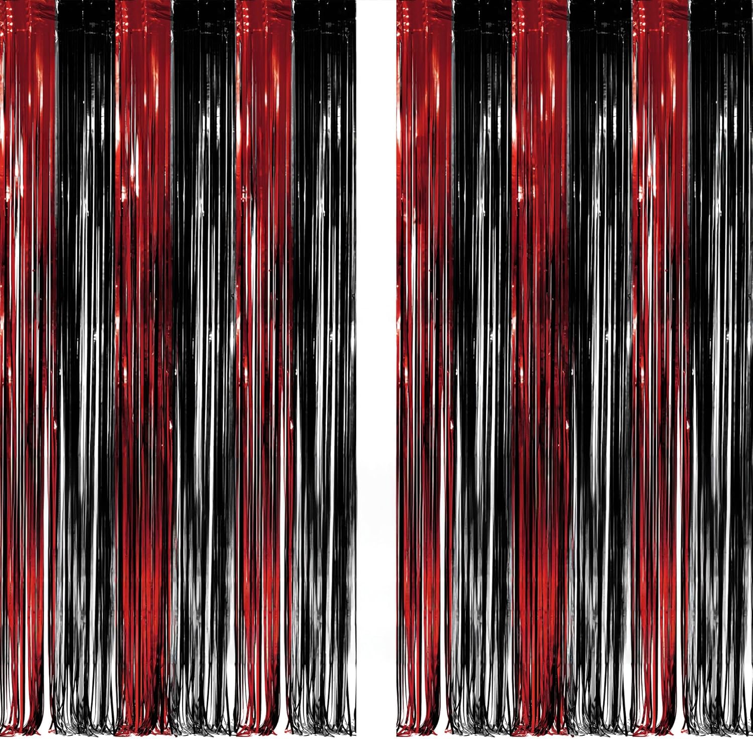 • Infuse an aura of mystery with our Black Red party streamers – a captivating addition that Black and Red themed events, Casino's theme party, and more. These tinsel backdrops in foil fringe curtain style will transport you to the world of Stranger.