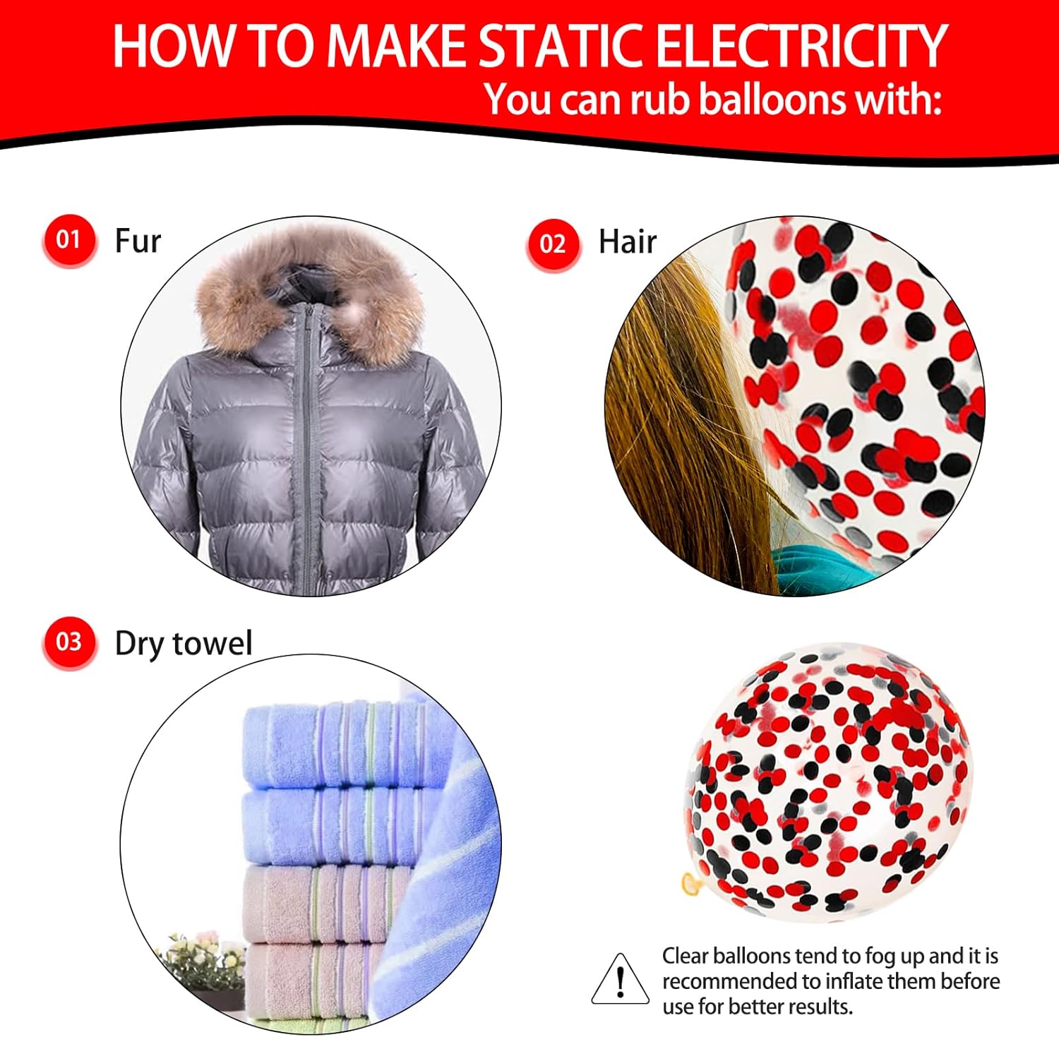 • 【Easy To Use】Black red white latex balloons and confetti balloons can be filled with air, helium and even water. Please do not over inflate the balloons to avoid bursting. If you have any questions about our balloon set, please contact us at once .