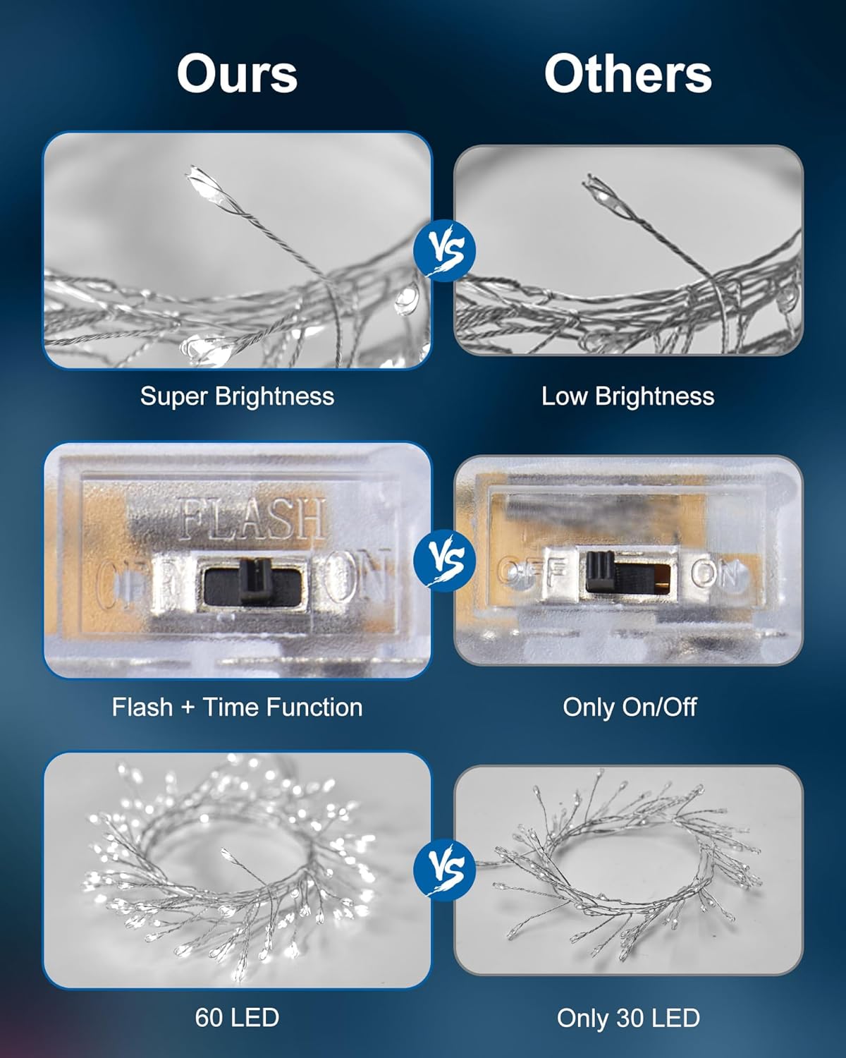 • Brighter Lights: 5 feet 3 x AA battery operated twinkling firecracker cluster lights, the luminous miniature LED light looks like a drop of light attached to a shiny wire, with steady 360 degree viewing angle they illuminate in every direction