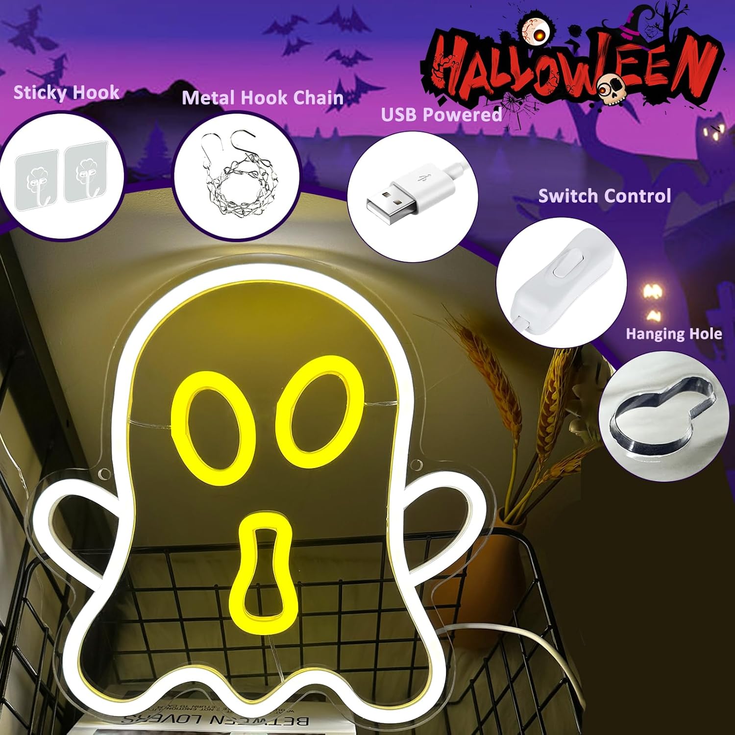 • PERFECT GIFT CHOICE: Halloween Ghost neon lights are a perfect gift choice for Halloween gifts, widely popular at Halloween parties or celebrations, suitable for classmates, friends, colleagues, roommates, teenagers, etc.