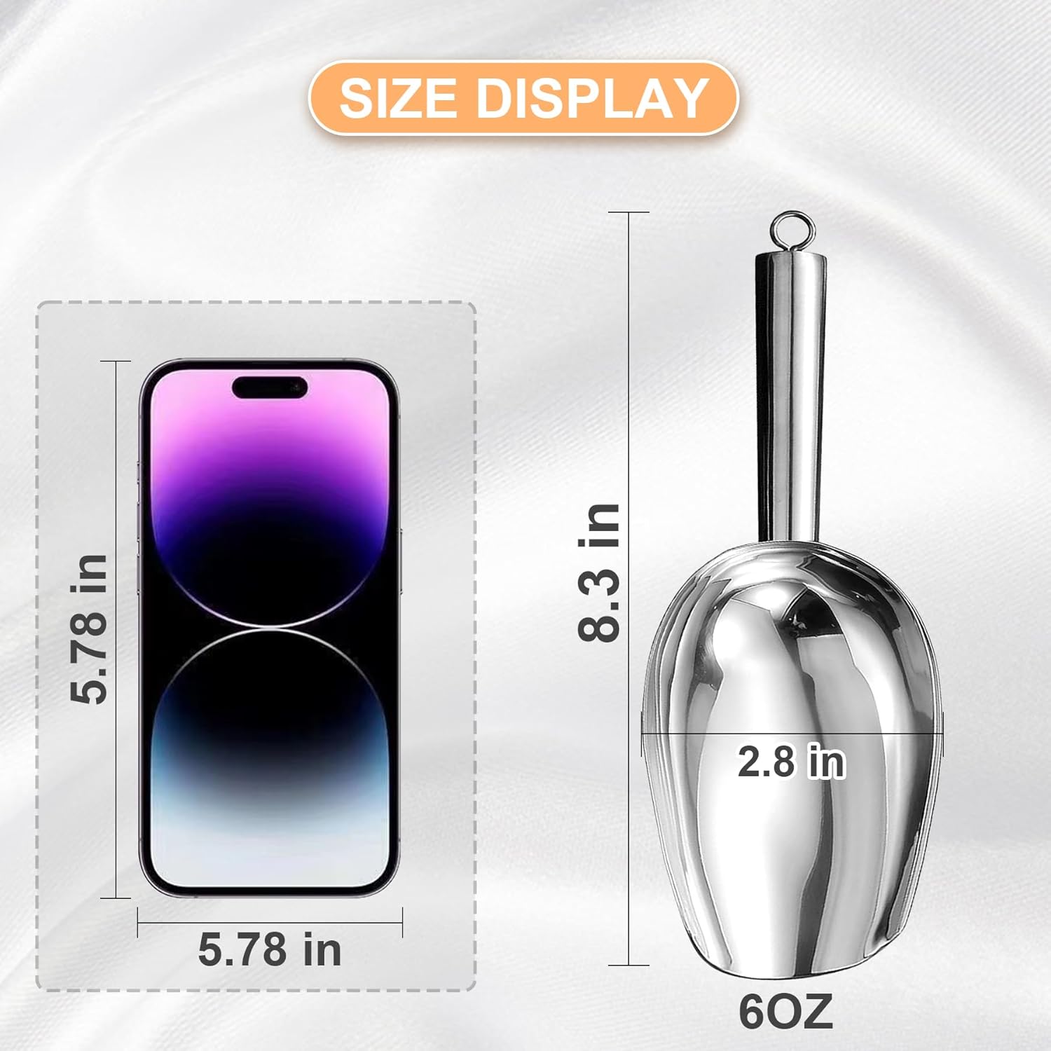 Metal Ice Scoop 6 Oz, Small Stainless Steel Ice scooper for Ice Maker Ice Bucket Kitchen Freezer Bar Party Wedding, Multipurpose for Coffee Bean,Flour Scoop,Dog Food Scoop (6 OZ-Silver)